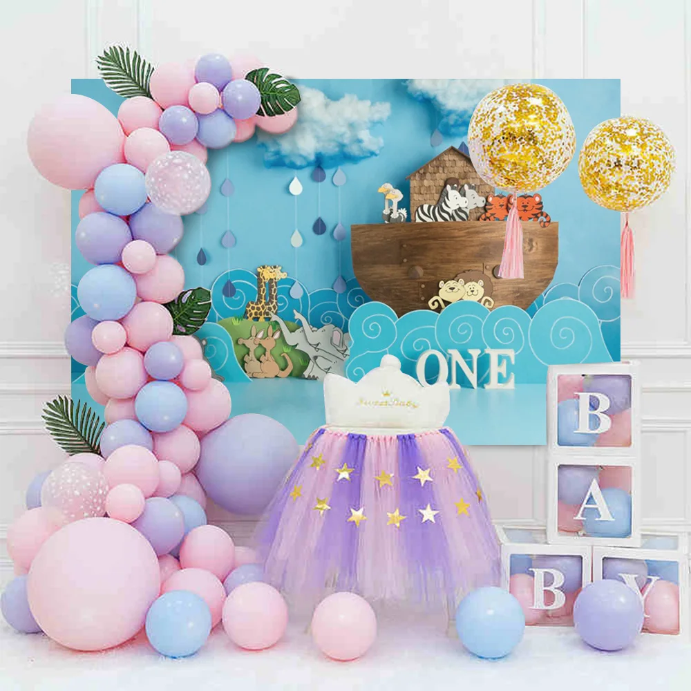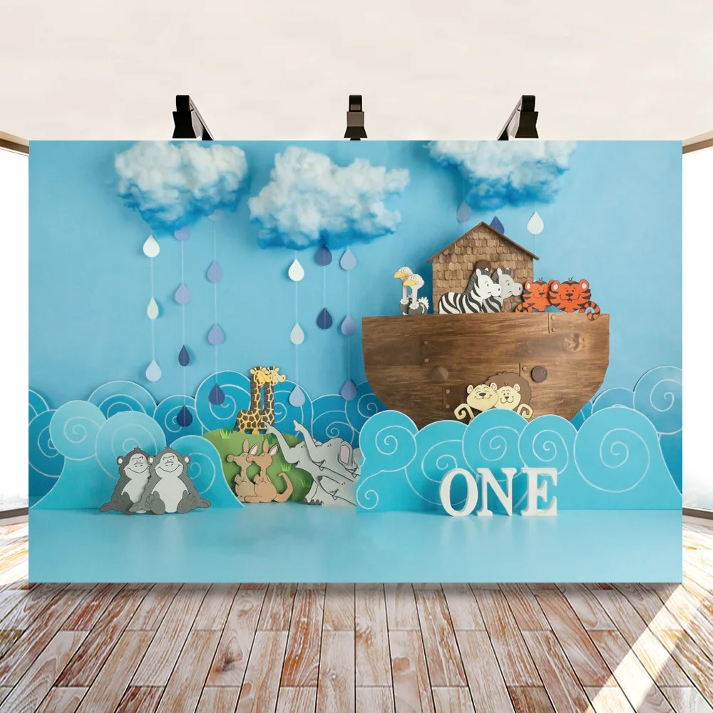 Фотофон Ноев ковчег Ноя животные лодка волна жираф слон голубое неб...