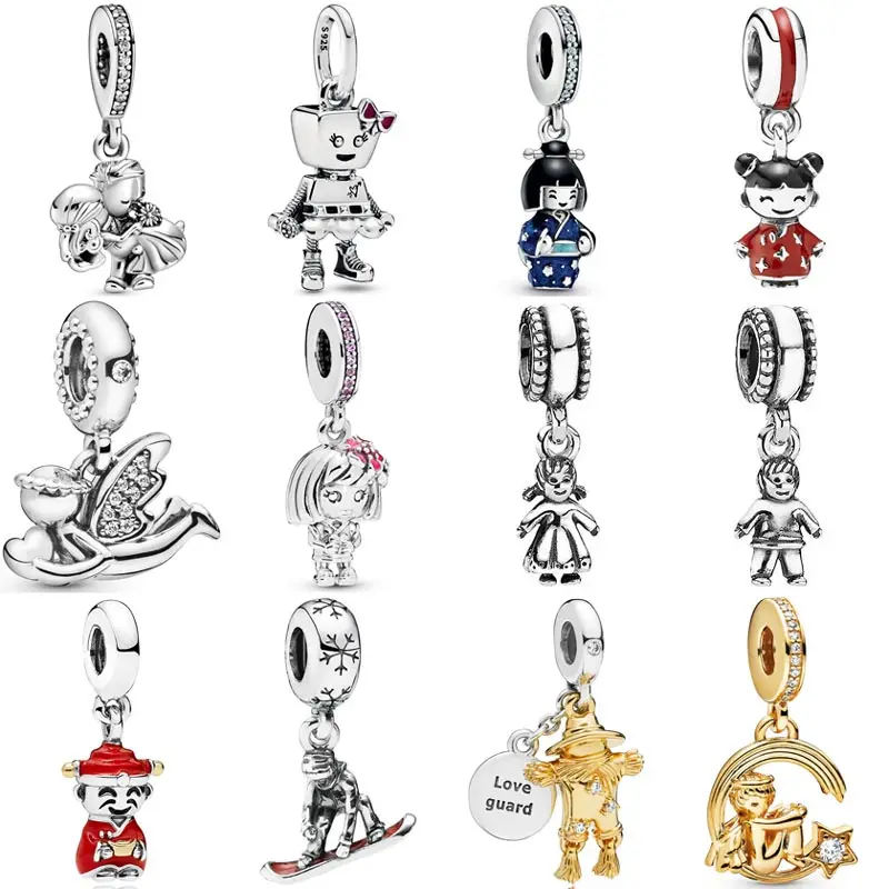 Парные японские куклы ангел Сердца Девушка и искусственные бусины 925 Стерлинговое Серебро Подвеска модный браслет DIY ювелирные изделия