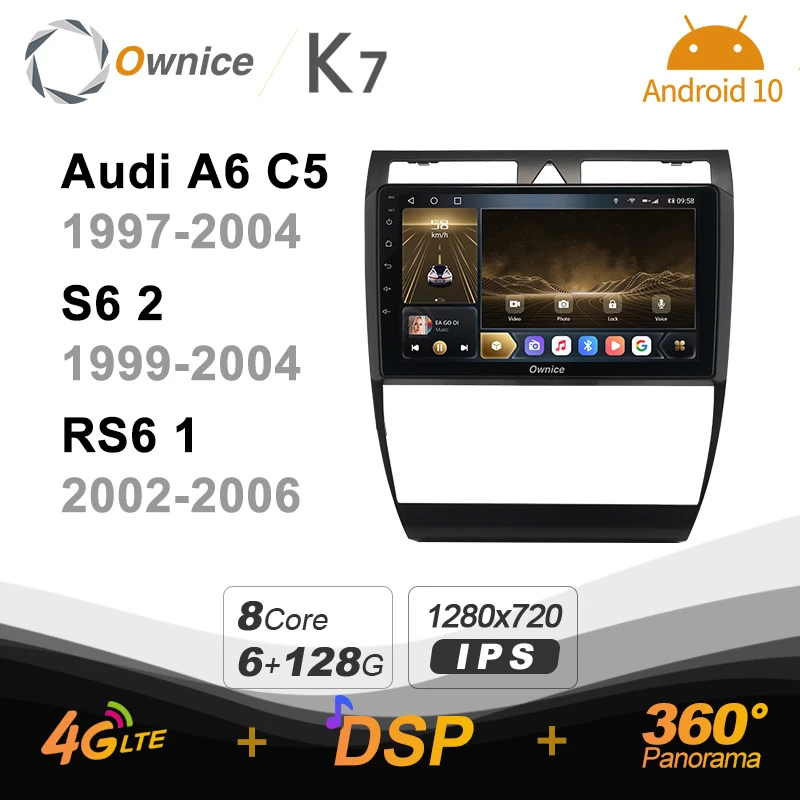 Автомагнитола Ownice K7, Android 10,0, 6G + 128G, для Audi A6 C5 1997-2004, S6 2 1999-2004, RS6 1 2002-2006, радио, 4G, LTE