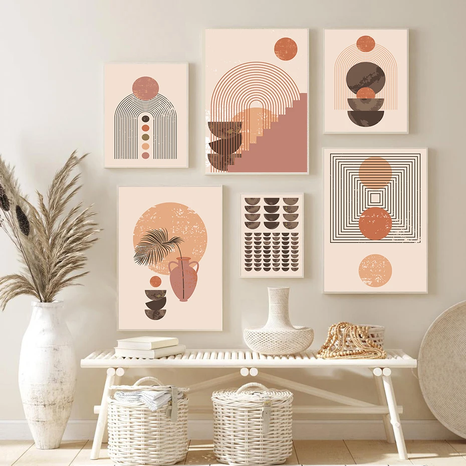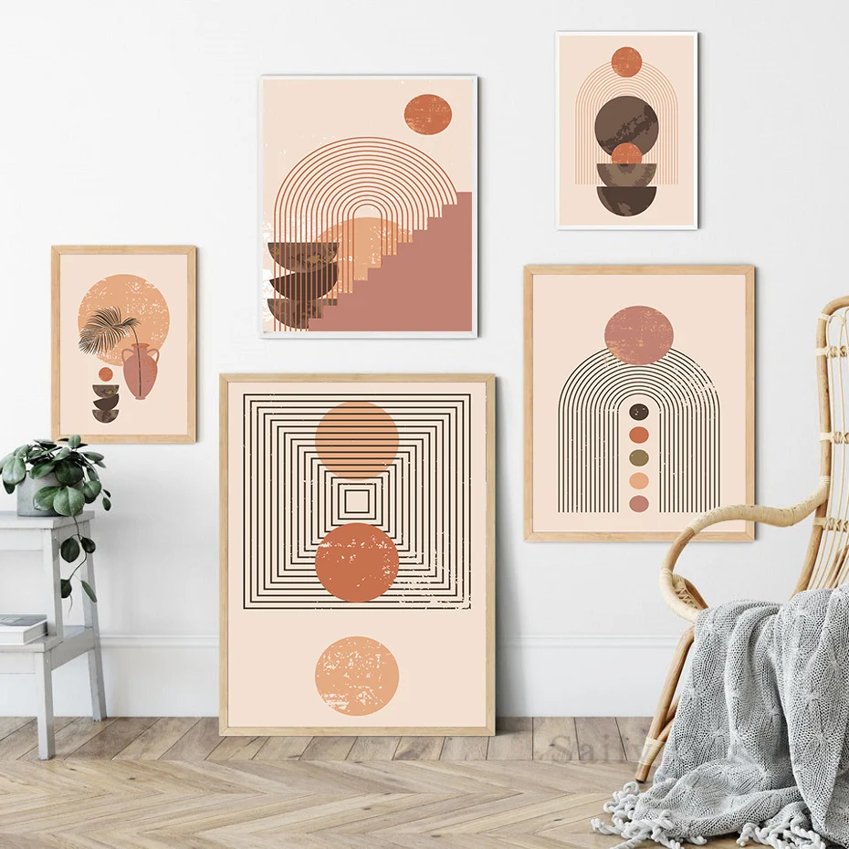 Постер в скандинавском ретро стиле с изображением мандалы на холсте...