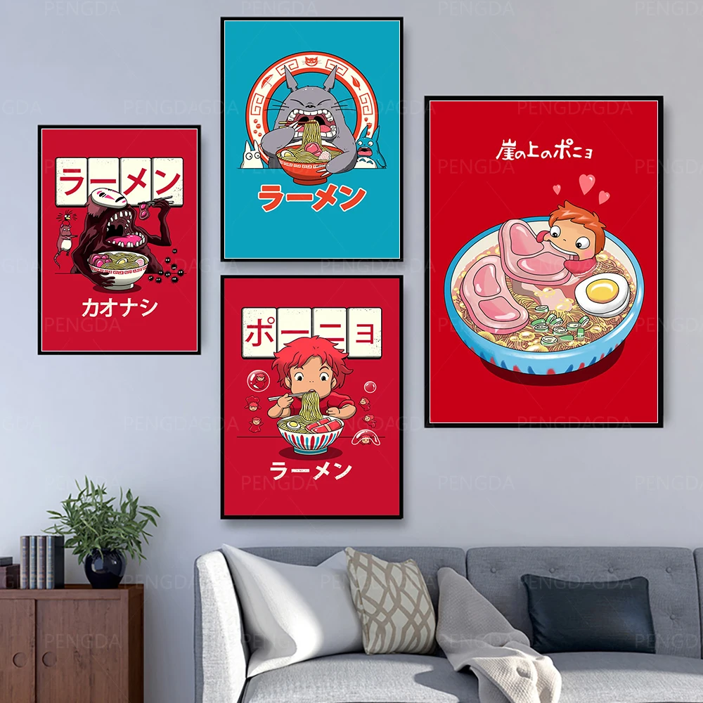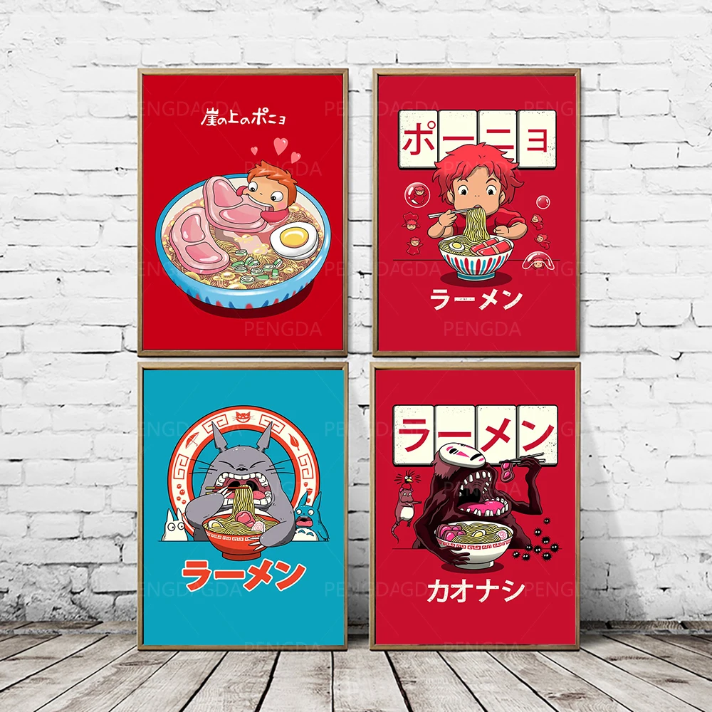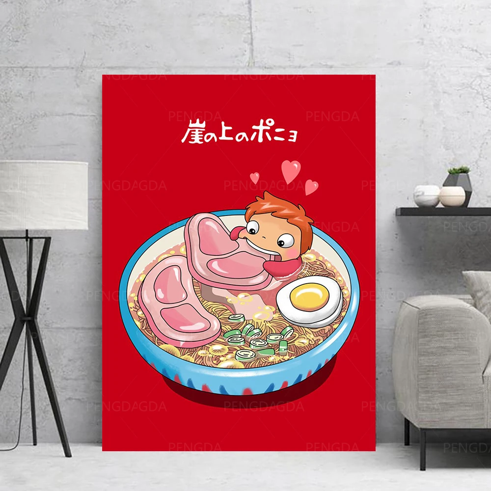 Настенный понё на скале, художественный плакат на холсте с принтом рамен, Современный домашний декор, японское аниме модульная рамка для фотографий в спальне