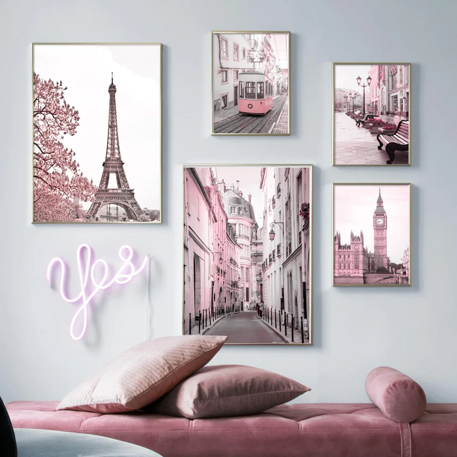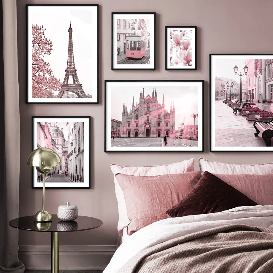 Настенная картина теплая розовая башня Парижа, изображение Милана н...