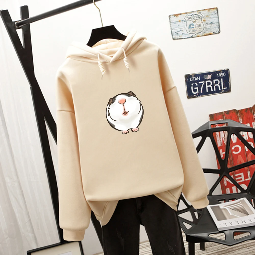 Толстовка женская с капюшоном и принтом морской свинки, пуловер в стиле Харадзюку, мягкая кофта с длинным рукавом, большие размеры, Корейская одежда