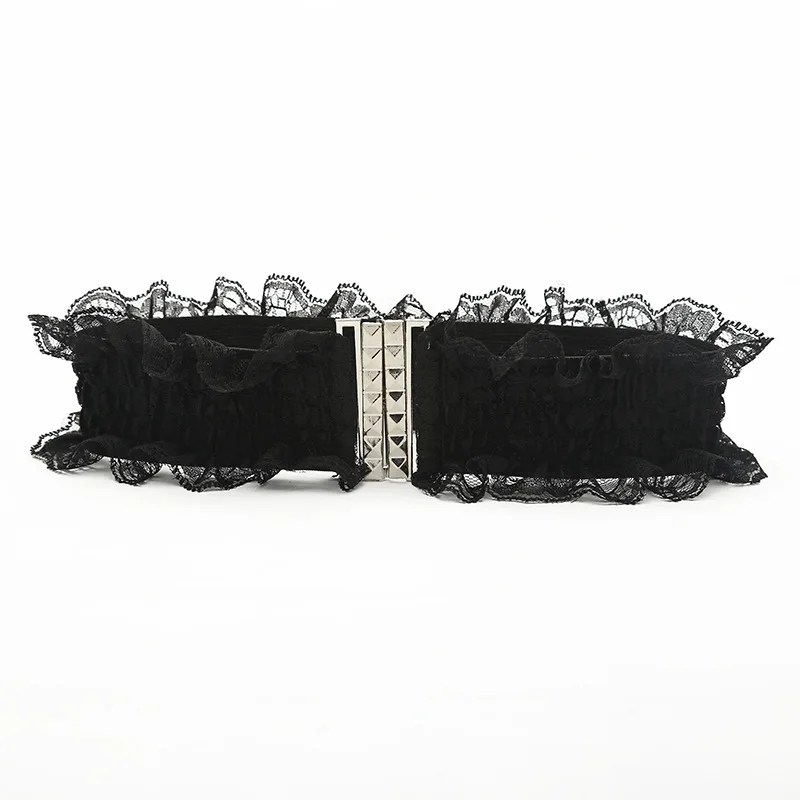 Модный черный, белый широкий кружевной пояс, женский пояс, эластичное платье, ремень с пряжкой, украшение для платья для девушек