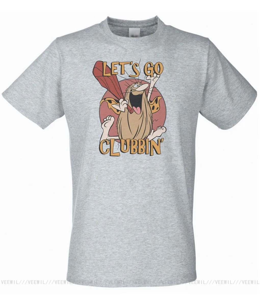Мужская серая футболка с надписью Let Go clubbin Captain Caveman, футболка в стиле 1990-х годов, крутые топы, футболка с круглым вырезом