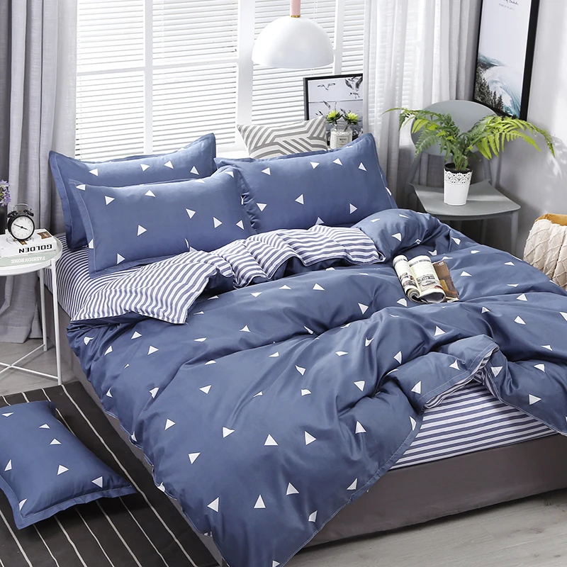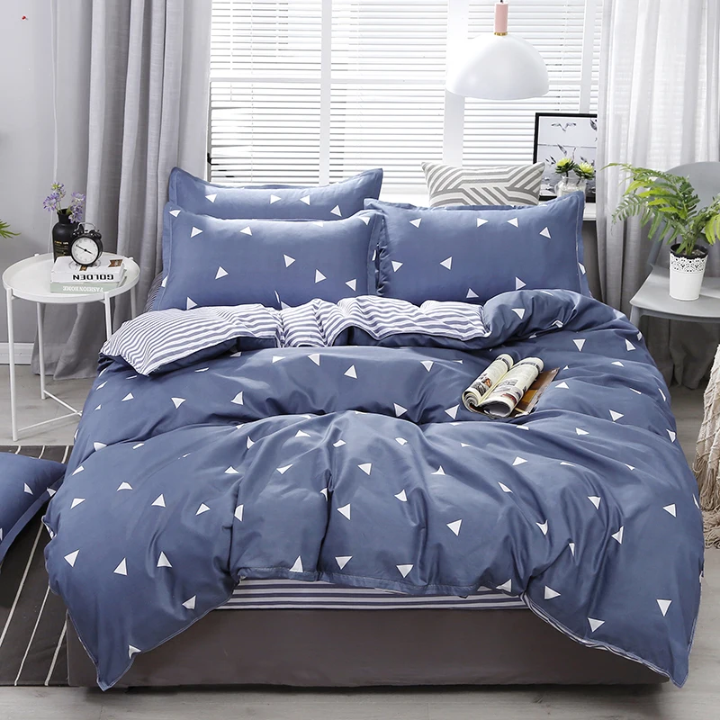 Комплект постельного белья с простым геометрическим рисунком, Современный Модный комплект с пододеяльником и покрывалом, размеры KingQueenTwin, голубого и белого цветов