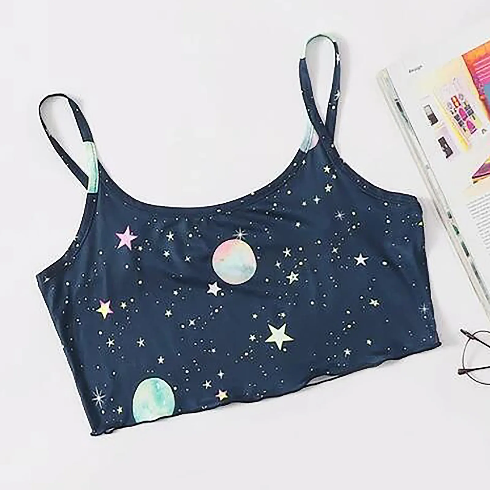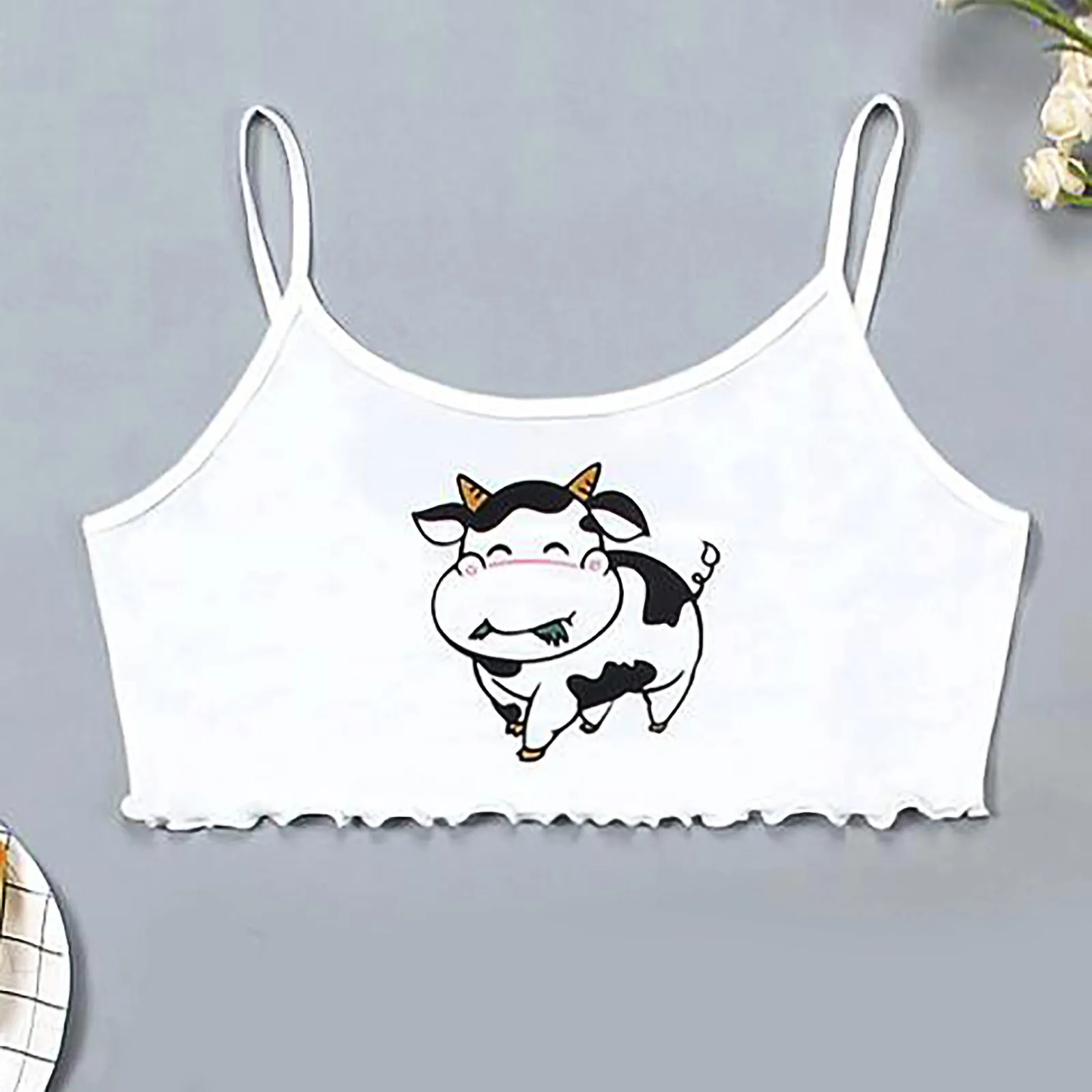 Кроп-Топ женский с принтом, модная майка без рукавов, повседневный короткий топ на бретелях, с круглым вырезом, y2k, лето 2021