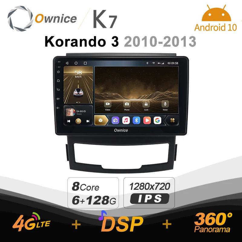 Ownice K7 Android 10,0 автомобильный Радио стерео для SsangYong Korando 3 2010 - 2013 4G LTE 360 2din Авто Аудио 6G + 128G SPDIF оптическийПодходит дляForSsangYong Korando 3 2010 - 2013Если оригинальное автомобильное радио имеет функцию ниже, совместим ли блок Ownice Head?* Управление рулем --- Да, нужно изучить* Оригинальный AUX и USB --- Да, поддержкаВнимание:Приведенная выше информация только для справки, иногда она может не быть совместима с некоторыми автомобилями, потому что автомобили производятся в разных странах в разных летних вариантах, спасибо за понимание.