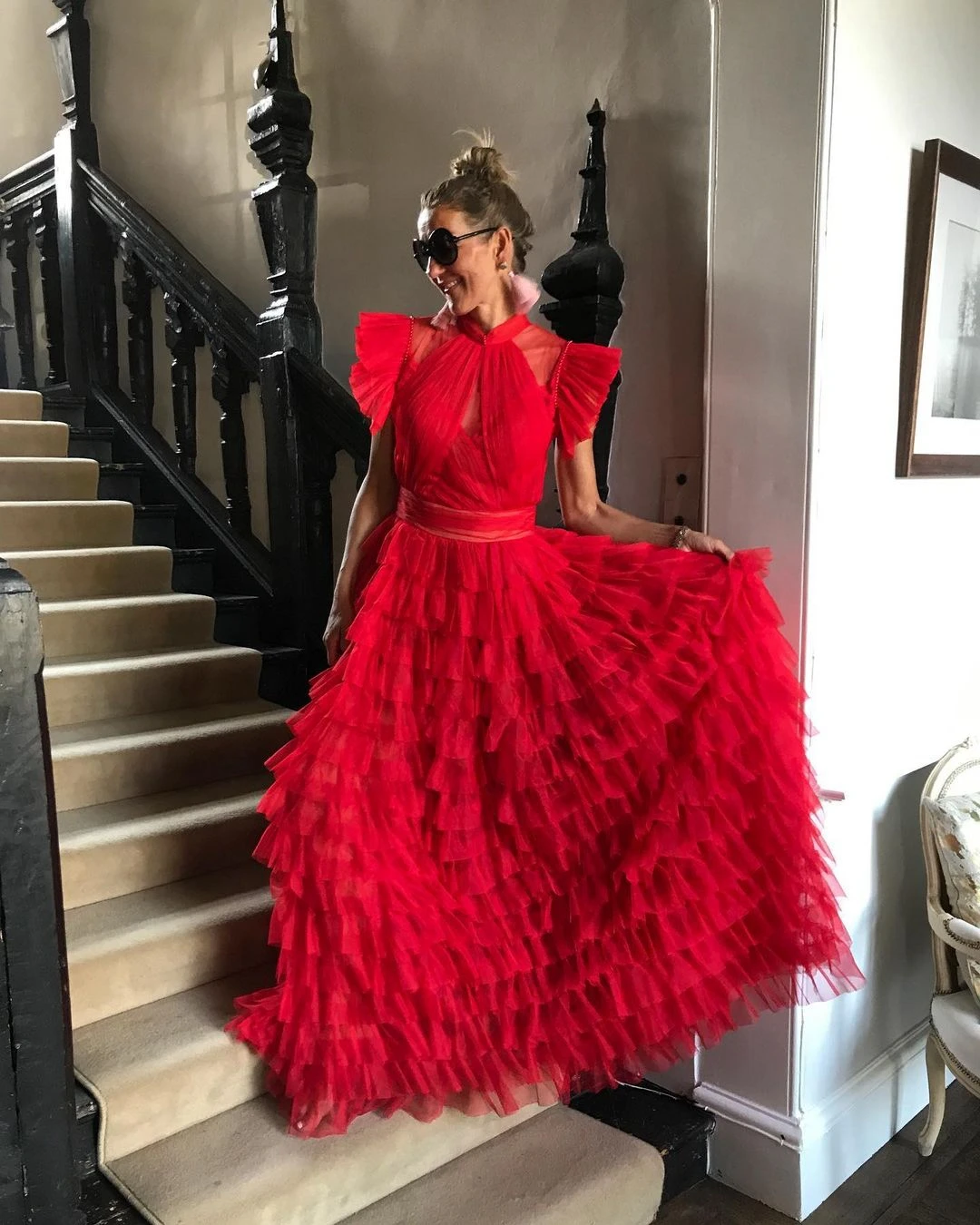Великолепные красные тюлевые платья для беременных женщин с оборкам...