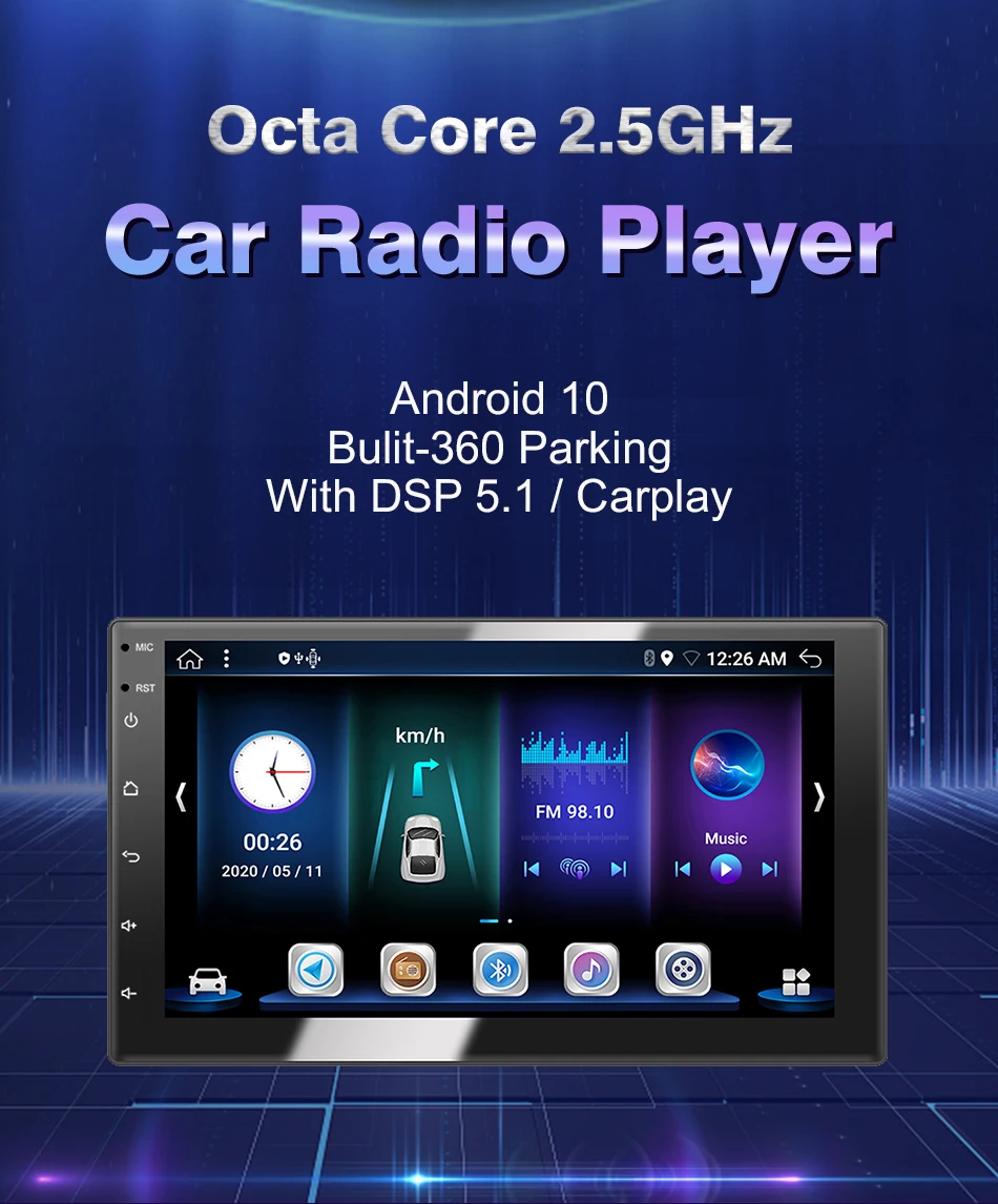 Автомагнитола Eunavi DSP 2 Din, Android 10, мультимедийный плеер для автомобиля, 7 дюймов, HD, универсальный автомобильный стерео, GPS-навигация, аудио-видео плеер BT