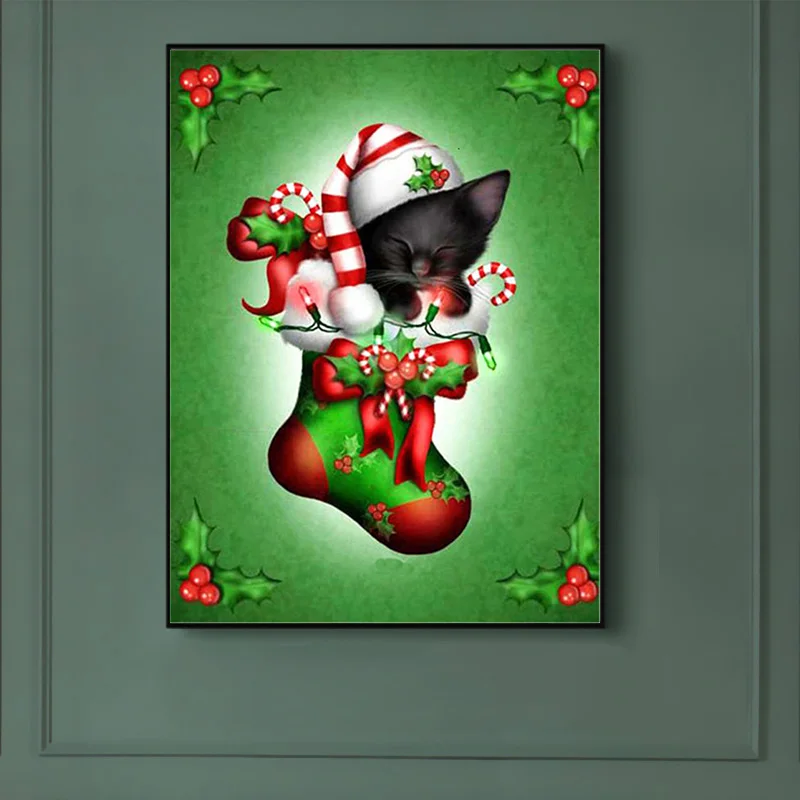 5D алмазная живопись сделай сам, вышивка крестиком, Рождественская вышивка в виде кошки, мозаика ручной работы, полная квадратная круглая вышивка, украшение для стен, подарок ручной работы