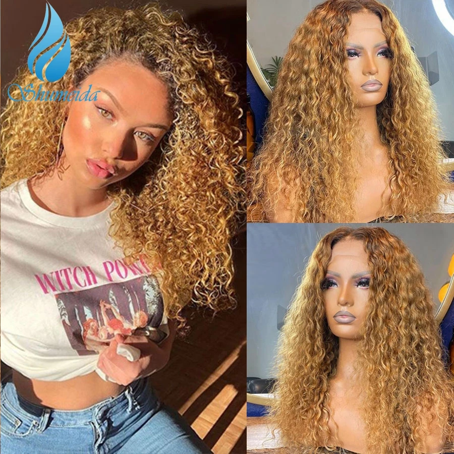 Поверхностный монтаж 13*4 Омбре медовая Блондинка кружевной передний парик из человеческих волос с детскими волосами бразильские неповрежденные Волосы Кудрявые безклеевые парики 4*4
