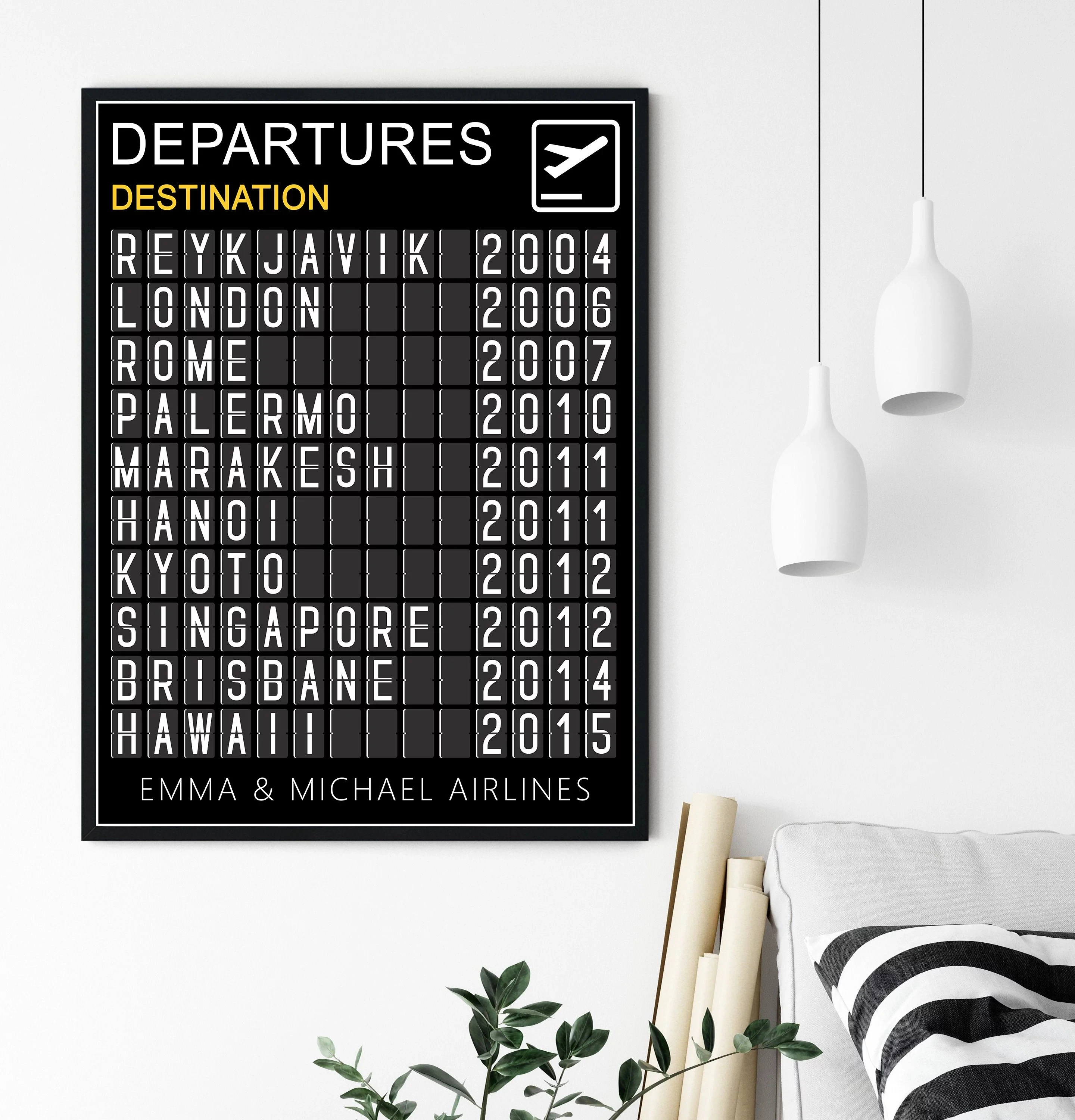 Персонализированный постер с именем страны для путешествий, персонализированный дизайн, доска для отправления аэропорта, печать на холсте, настенная живопись, Декор, подарок