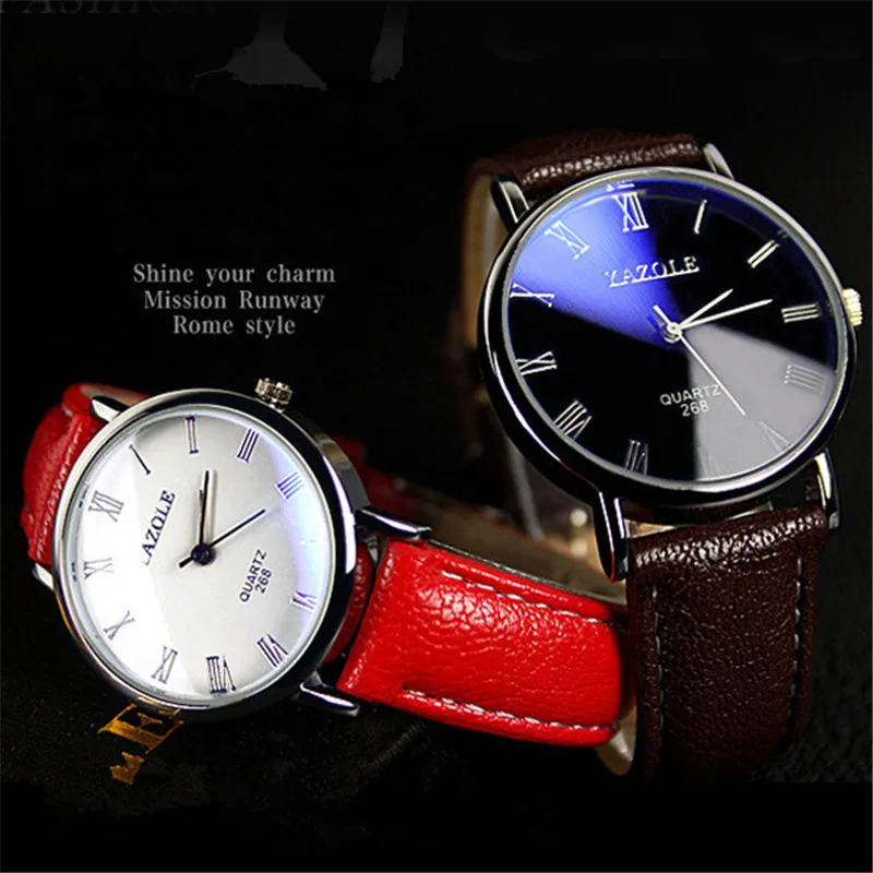 Часы Yazole Мужские кварцевые, модные повседневные деловые, с кожаным ремешком, классические, с голубым стеклом