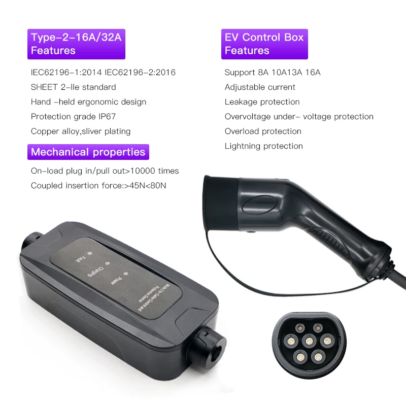 Зарядное устройство KOLANKY EV тип 1Тип 2 16 А, 1 фаза с кабелем 5 ...