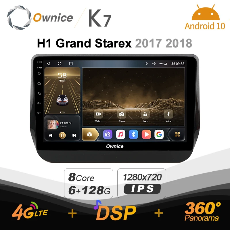Автомагнитола Ownice K7, Автомобильная магнитола 6 ГБ + 128 Гб для Hyundai H1 Grand Starex 2017 2018 android 10,0 с поддержкой атмосферной лампы 360 4G LTE 1280*720 SPDIF