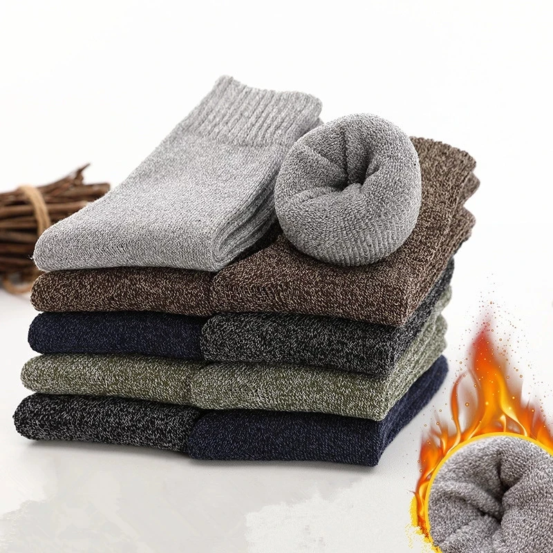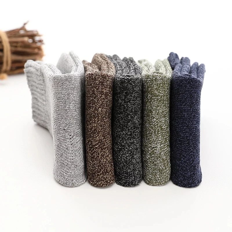 Носки мужские зимние однотонные, утепленные шерстяные Хлопковые вязаные, повседневные, для пола, 5 цветов