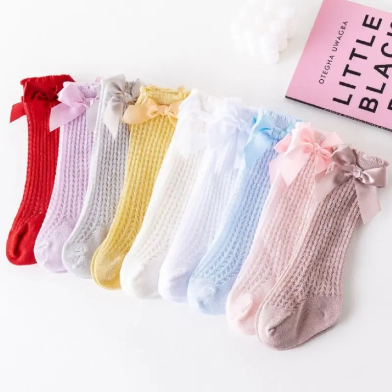 Для маленьких девочек и девочек дошкольного возраста, носки, одноцветные, Обувь с дышащей сеткой носки для новорожденных из хлопка средним голенищем, 34 до колена испанский Стиль носки для девочек