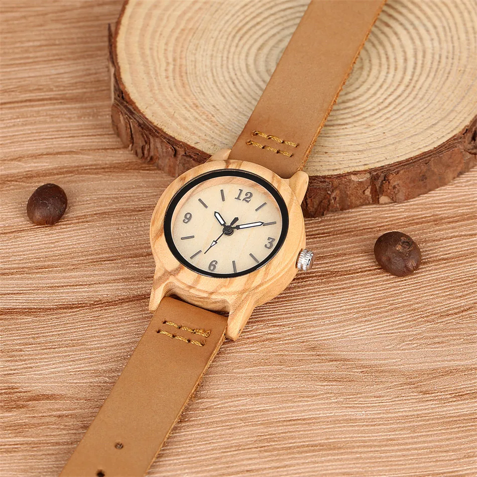 Минималистичные женские часы с маленьким циферблатом, черныекоричневые наручные часы из натуральной кожи, светящиеся указатели, женские деревянные часы