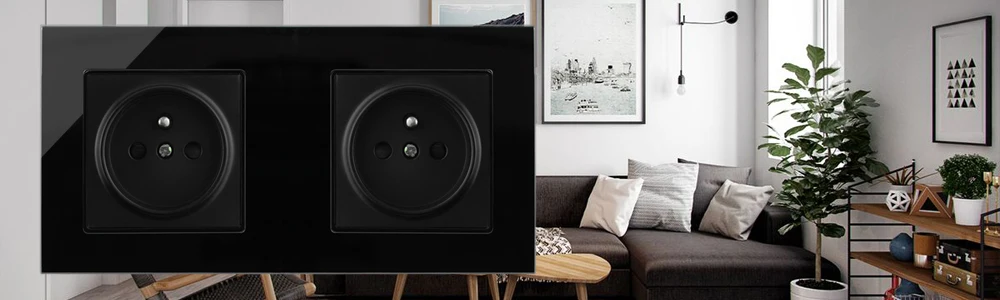 Французская розетка FR 16 А, настенная розетка с USB-портом, домашняя электрическая розетка, черная стеклянная рамка, Польша, Чешская, Бельгийская, двойная, тройная