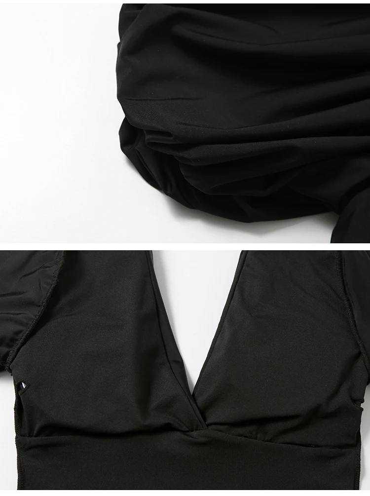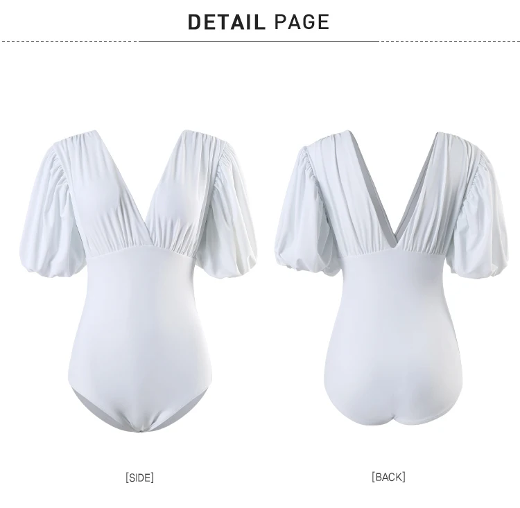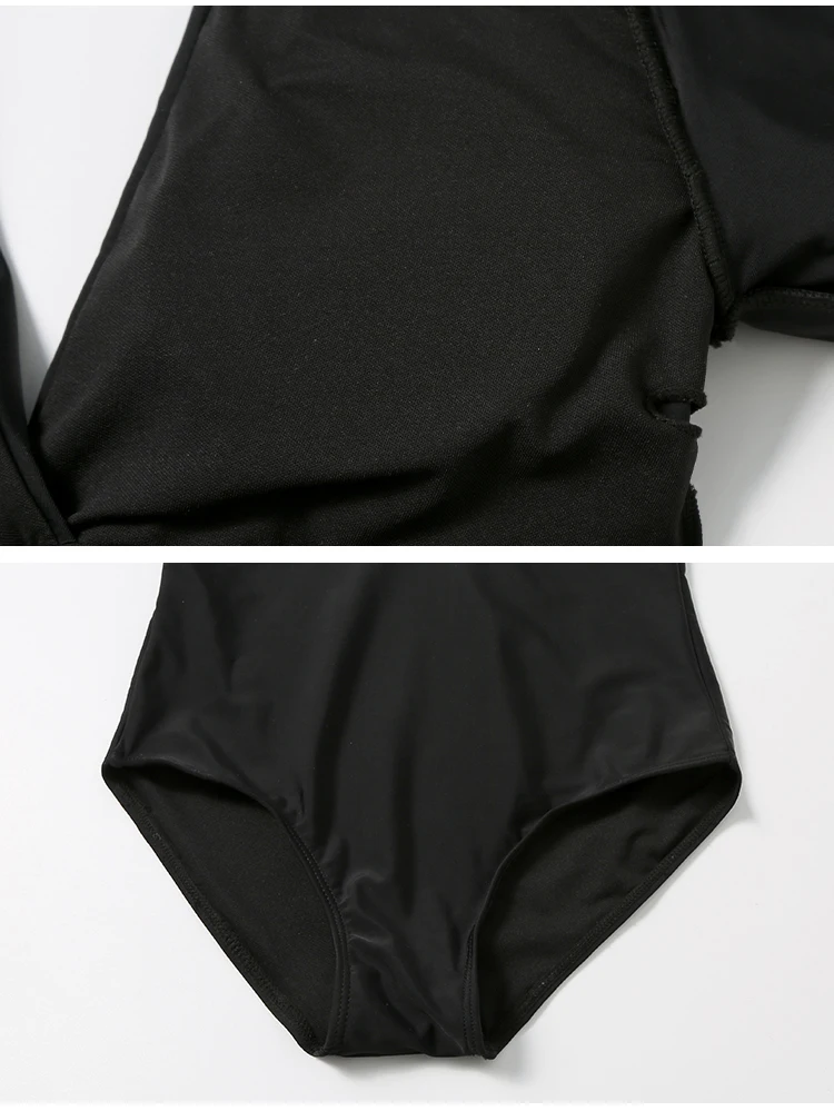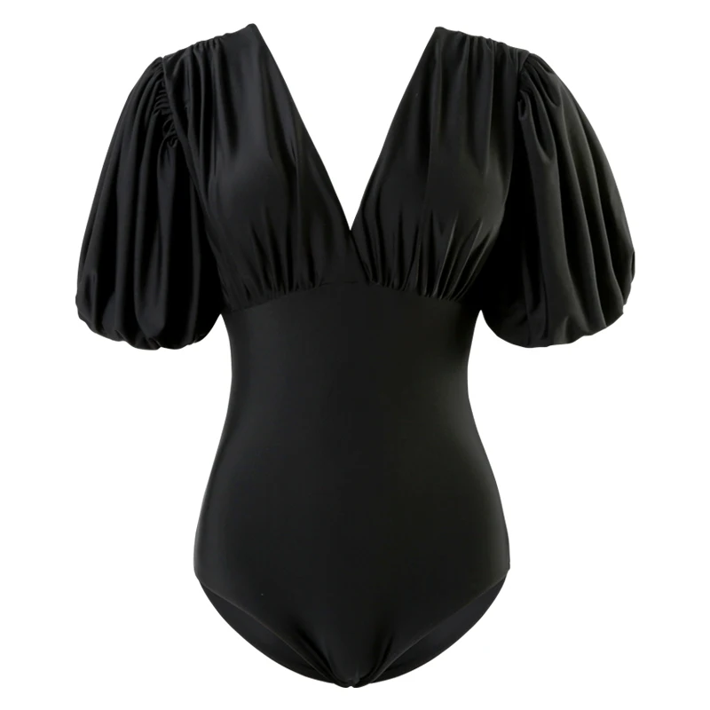 Однотонное Монокини, сексуальный купальник с пышными рукавами, Глубокий V-образный вырез, пляжный купальный костюм, пуш-ап, мягкий купальник, Женский цельный купальник