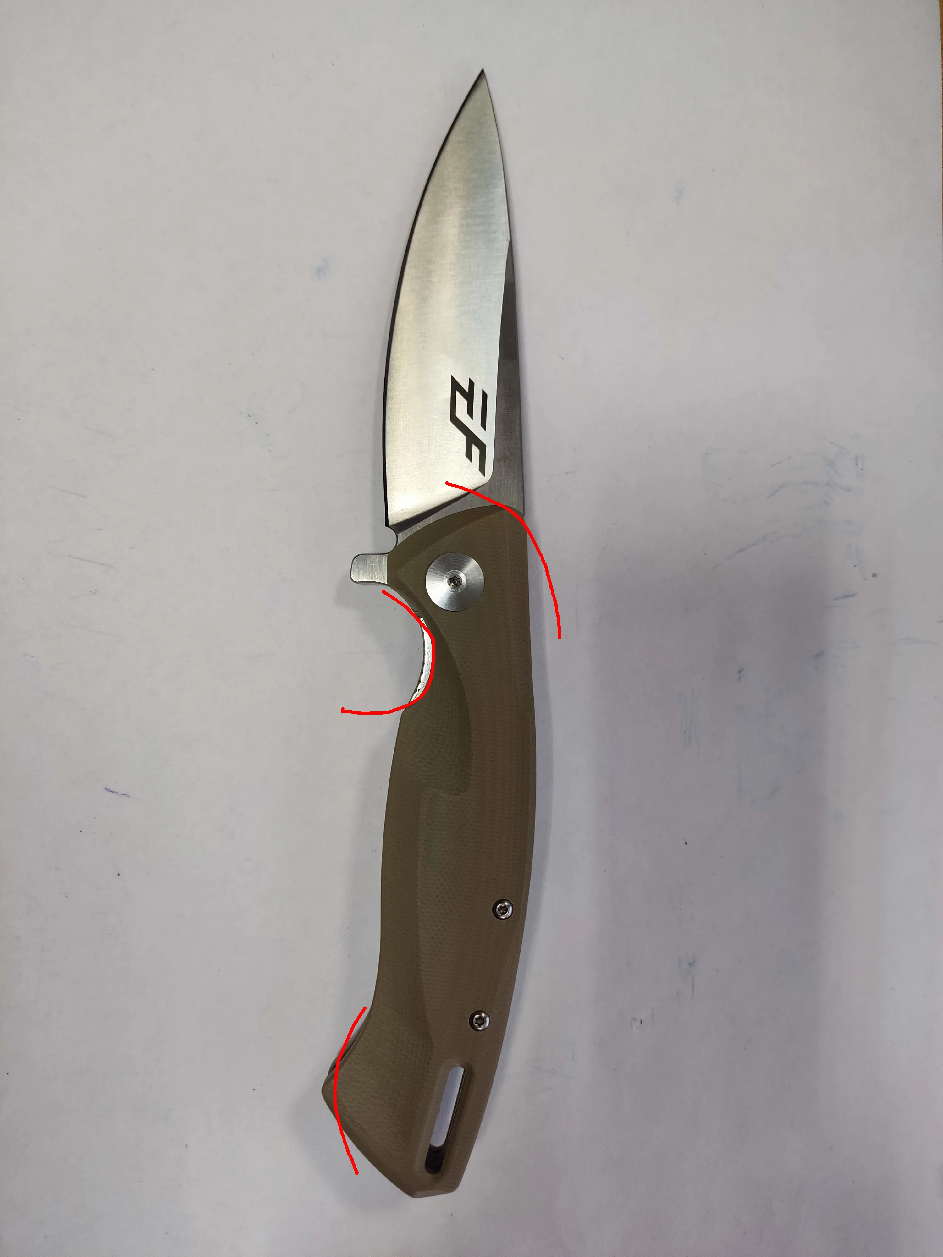 Хороший нож. Легкий. Реальный цвет более серый. Из личных придирок - немного сточил острый выступ рукоятки над обухом и углубил ямку у фиксатора, планирую сточить под мизинцем. Сделал вывод после использования, что больше не куплю скругленное лезвие - опасно соскальзывает, когда срезаешь ветку. Прикладываешь силу, а рука проваливается в пустоту. В целом, ножи EF (у меня это второй) оставляют неплохое впечатление, но немного не продуманы в эргономике. Если сравнивать с рыбой - те чуть удобнее в мелочах и чуть аккуратнее сделаны (например, полноценная фаска на фиксаторе, а здесь цепляет кожу). Но рыба ощутимо дороже, так что EF соответствует цене.