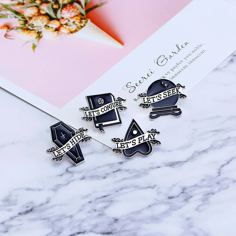 Брошь в стиле панк, готика, темная эмаль, магическая книга, черное сердце, гроб, броши для одежды, куртки, шляпы, заколка на Хеллоуин, креативное Ювелирное Украшение