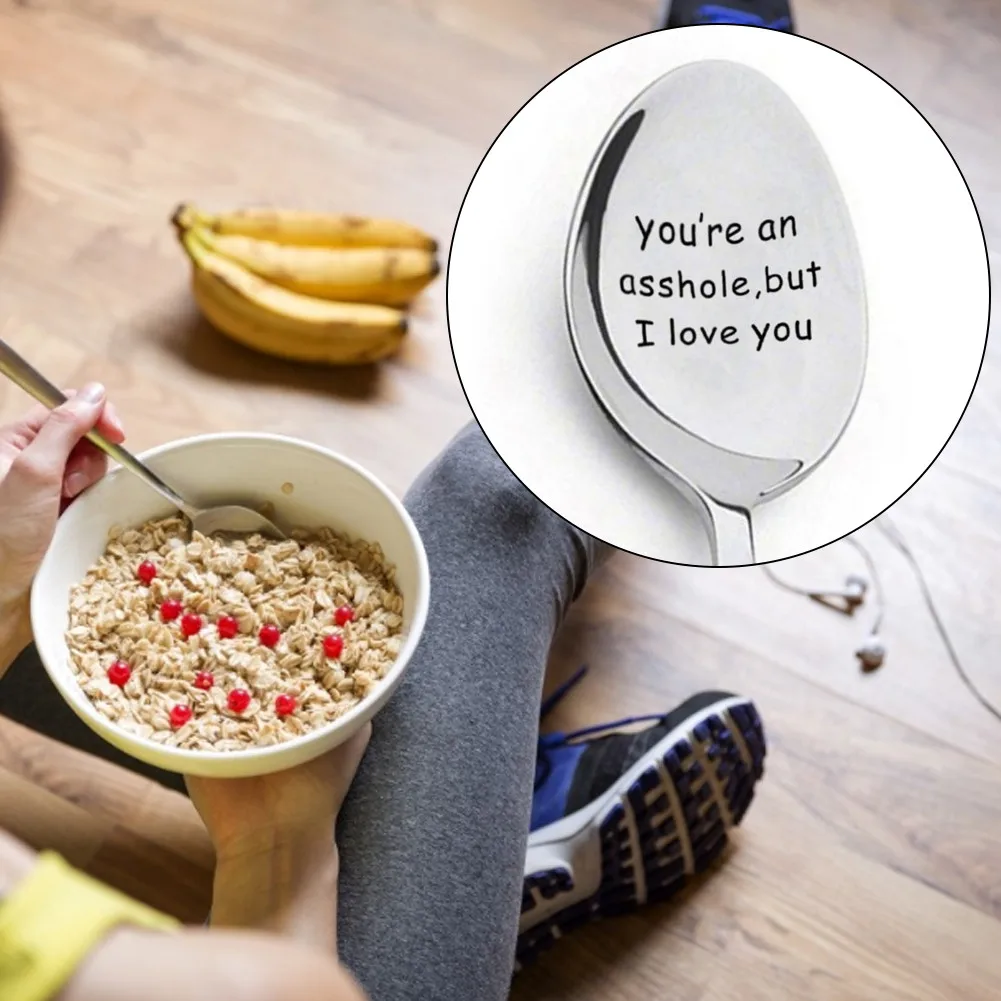 Ложка для зерновых, с гравировкой, из нержавеющей стали, с длинной ручкой, индивидуальная гравировка, столовые приборы кофейная ложка подарок