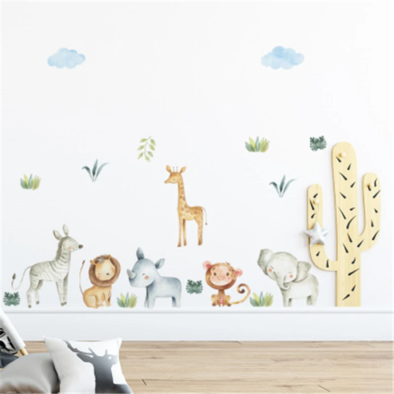 Мультфильм Животные джунгли настенные наклейки для детской комнаты украшение для детской комнаты акварель сафари ПВХ Наклейки на стены Гостиная