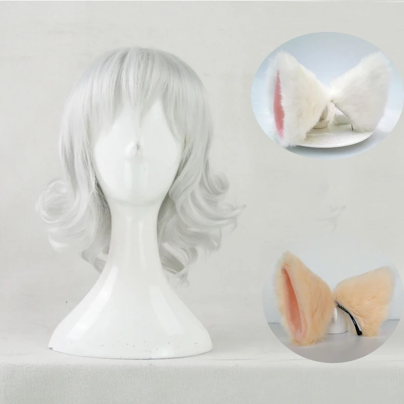 Hunter x Hunter Neferpitou Косплей парики Серебристые белые короткие вьющиеся парики с ушами термостойкие синтетические волосы