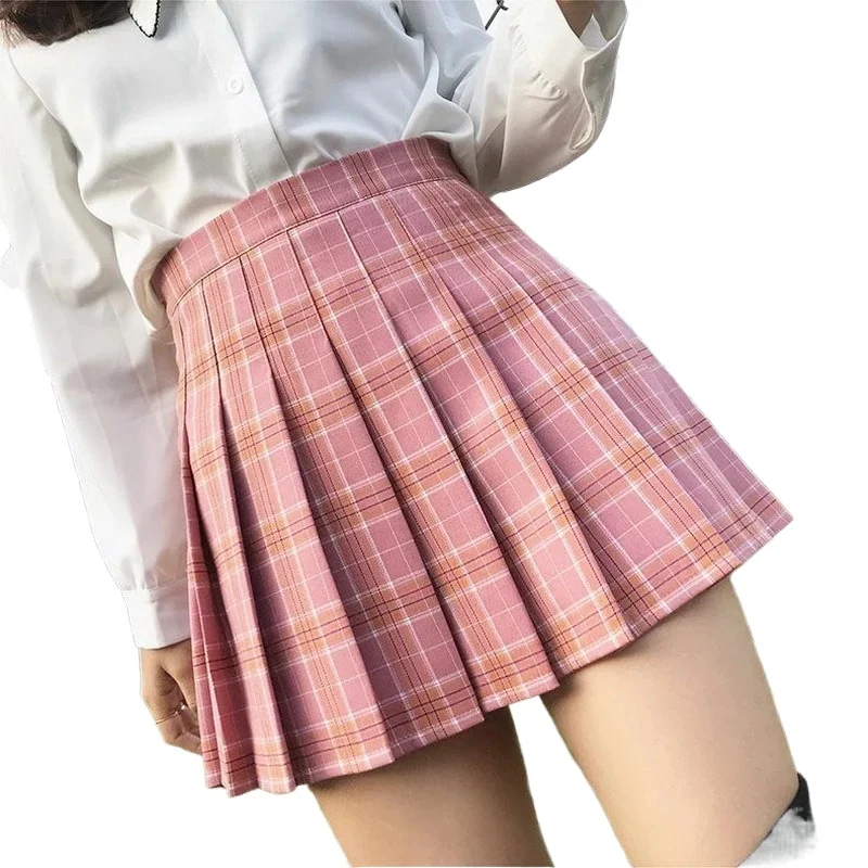 Плиссированная юбка 2021 Летняя Сексуальная юбка с завышенной талией для девочек Милая Одежда для девочек школьная мини-юбка Модные женские клетчатые юбки размера плюс XS-2XL J168