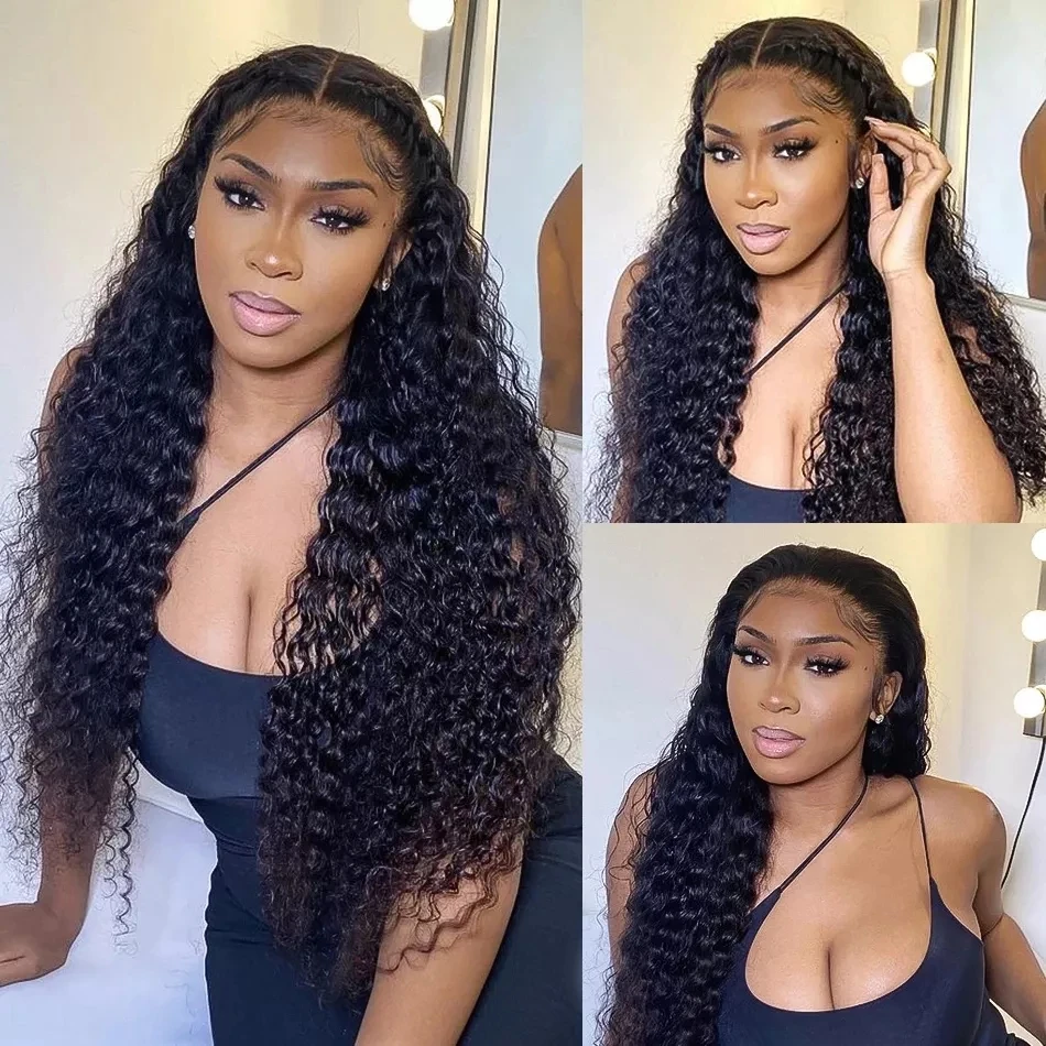250 плотность 30 32 40 дюймов глубокая волна 13х6 Кружева Фронтальные человеческие волосы парики бразильское Закрытие Свободные воды вьющиеся парик для черных женщин