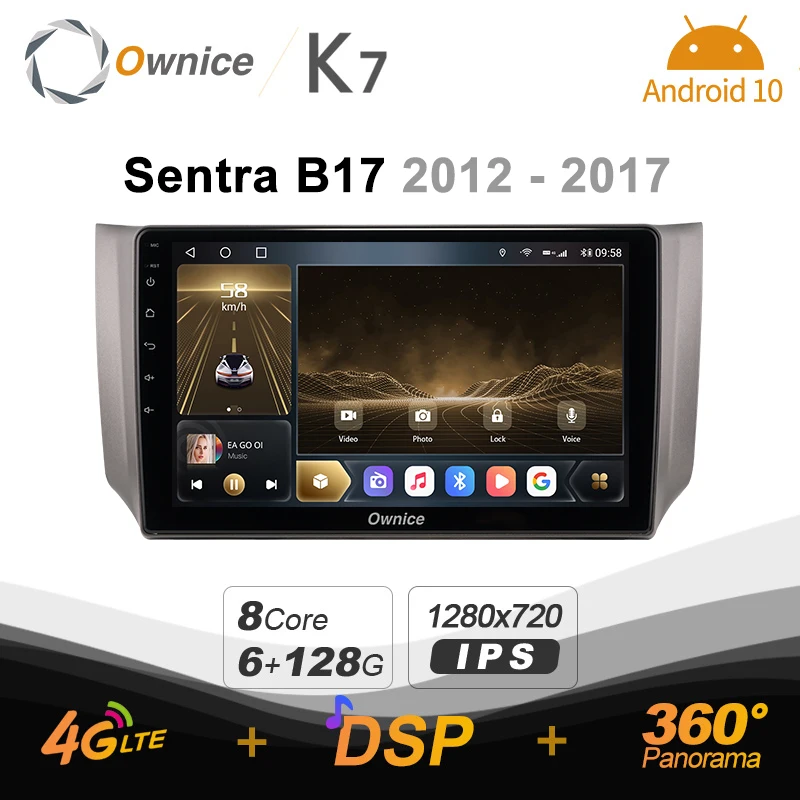 Автомагнитола Ownice K7 на Android 10 для Nissan Sentra B17, 2012, 2016, 2017, видеоплеер, 6 ГБ + 128 ГБ, быстрая зарядка, Коаксиальная, 4G, LTE