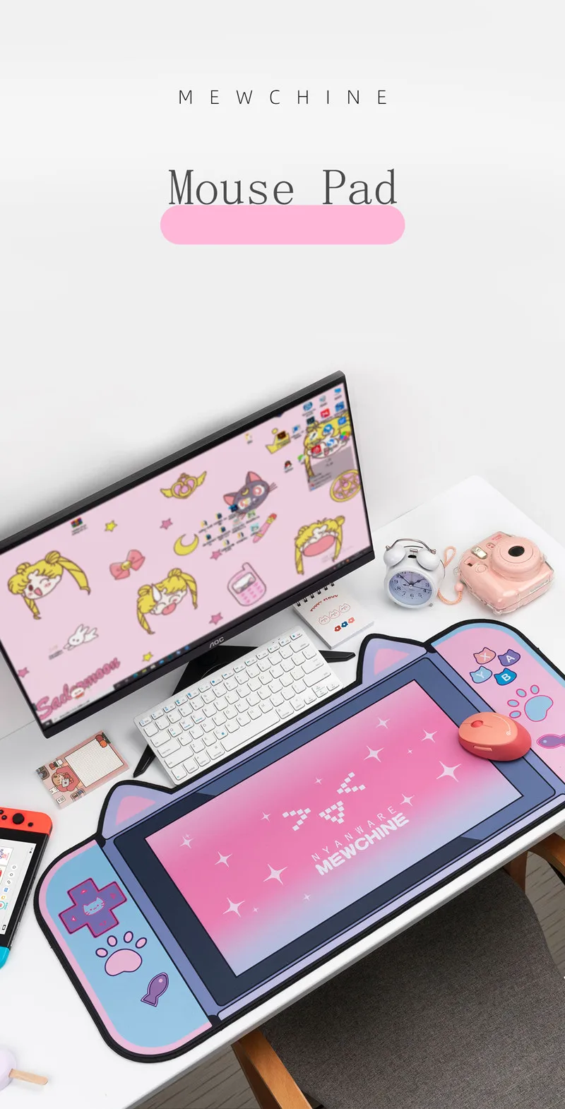 80x40 см и кошачьими ушками игровой коврик для мышки с аниме большо...