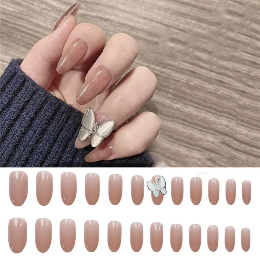 Съемные накладные ногти, 24 шт., нюдовые нежные французские блестящие накладные ногти с миндалевидной головкой, полностью закрывающие искусственные ногти для наращивания ногтей