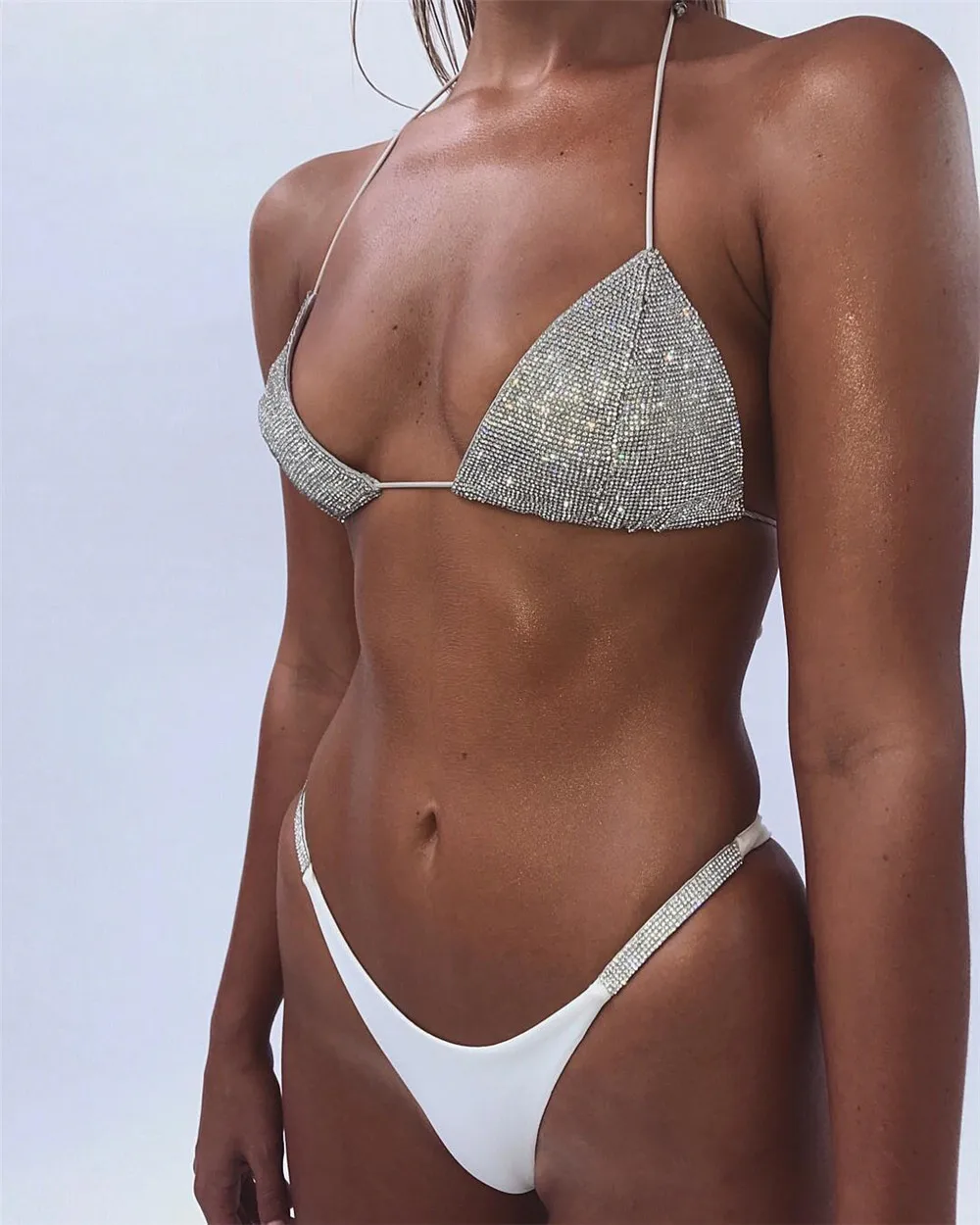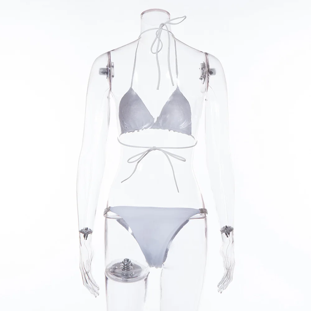 Бразильское бикини с низкой талией и бриллиантами, пляжная одежда, ...