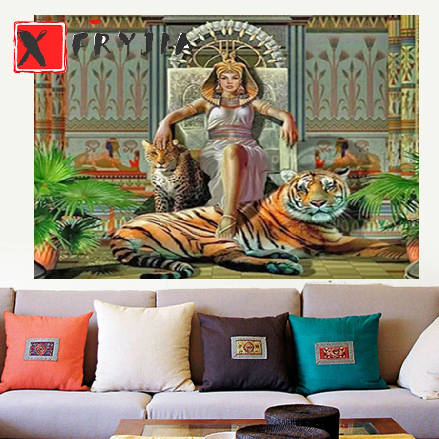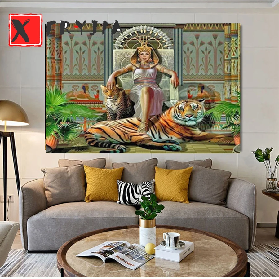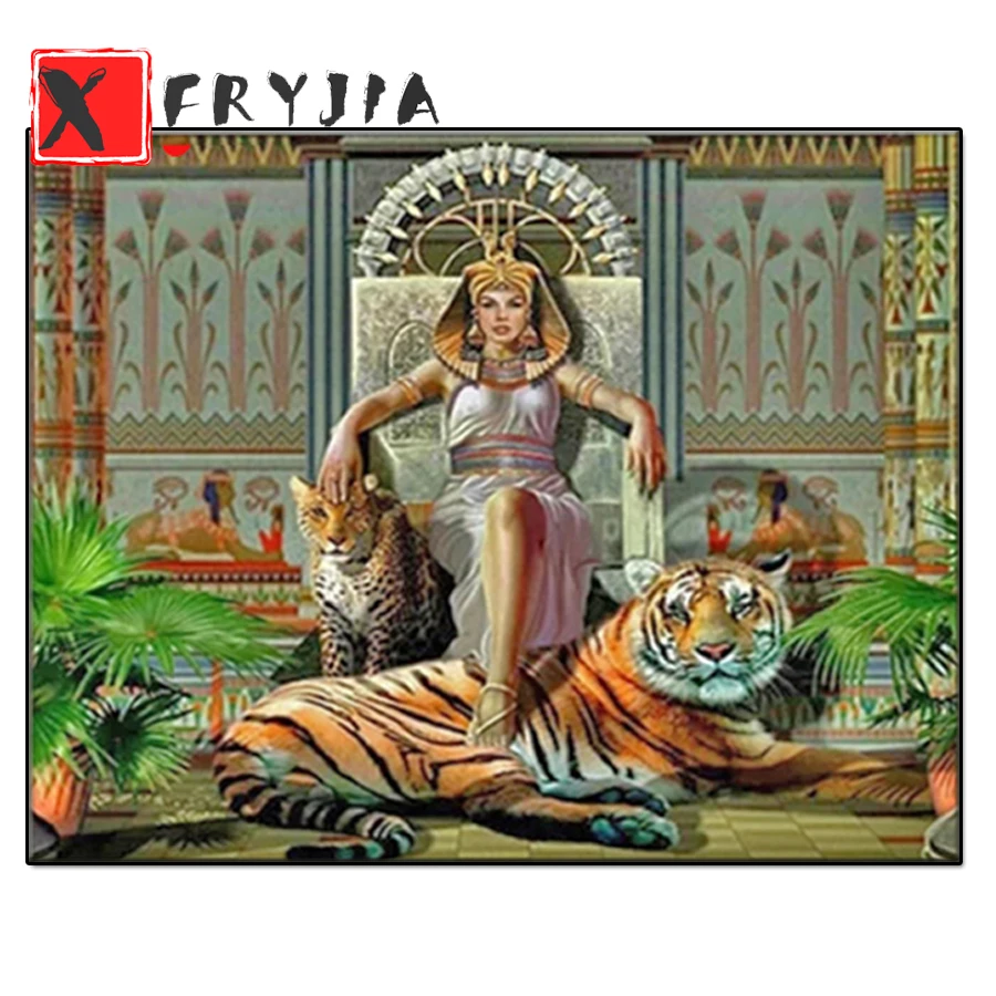 Картина из квадратных страз, картина из страз, египетское порно, королева и тигр, 5D алмазная вышивка, мозаика ручной работы, подарочное украшение