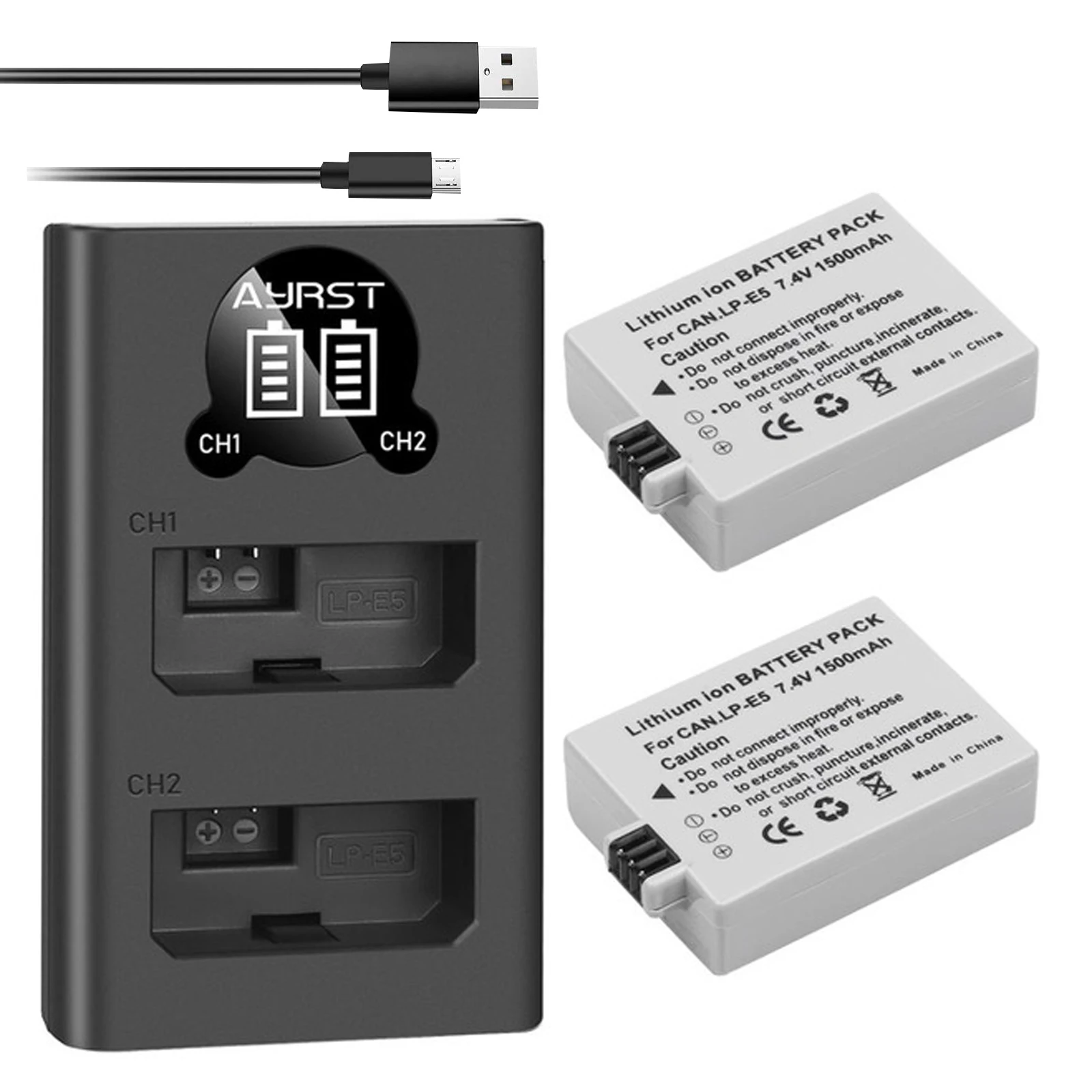 Аккумулятор 1500 мАч LPE5 LP-E5 LP E5 + двойное зарядное светодиодный для камеры Canon 450D 500D 1000D KissD X2 X3 F Rebel XSi Xli XS L15