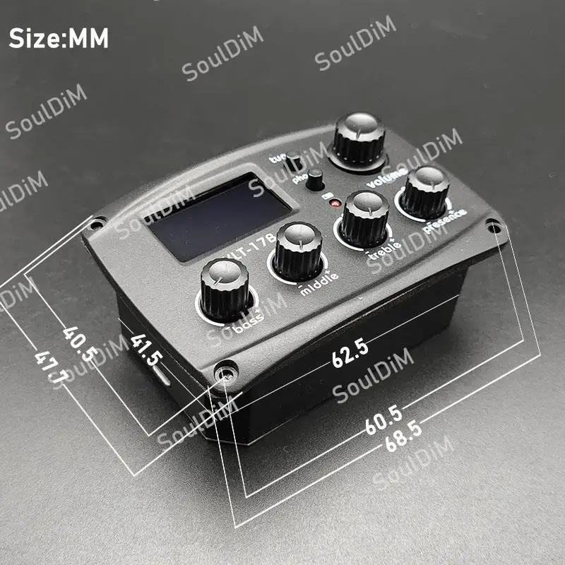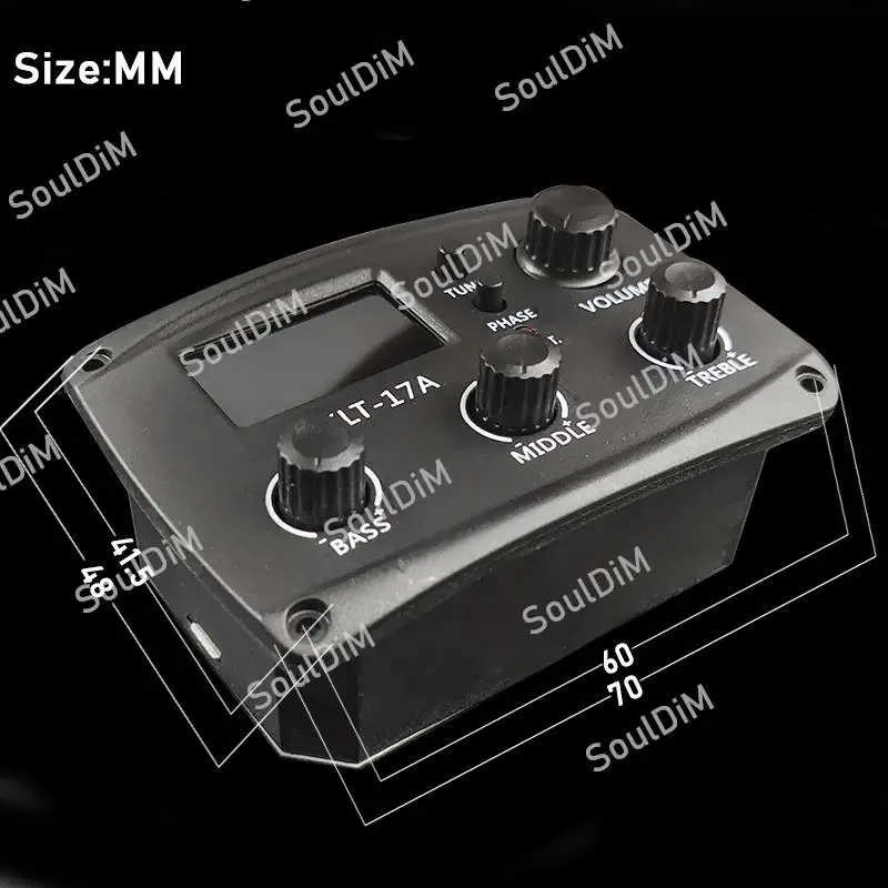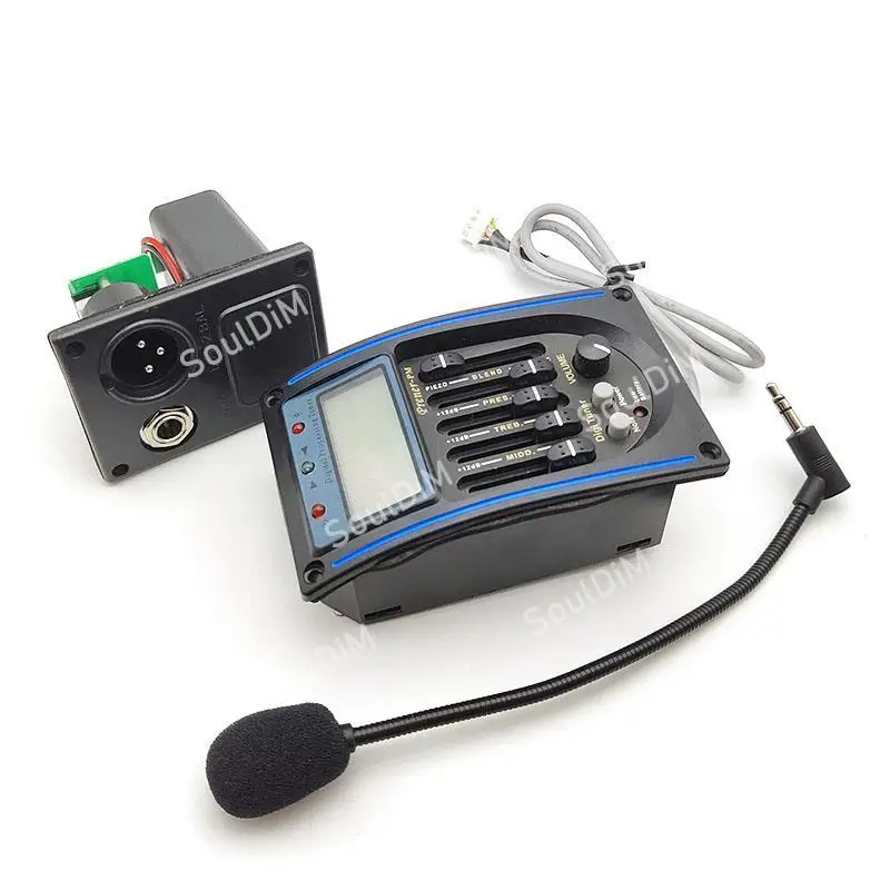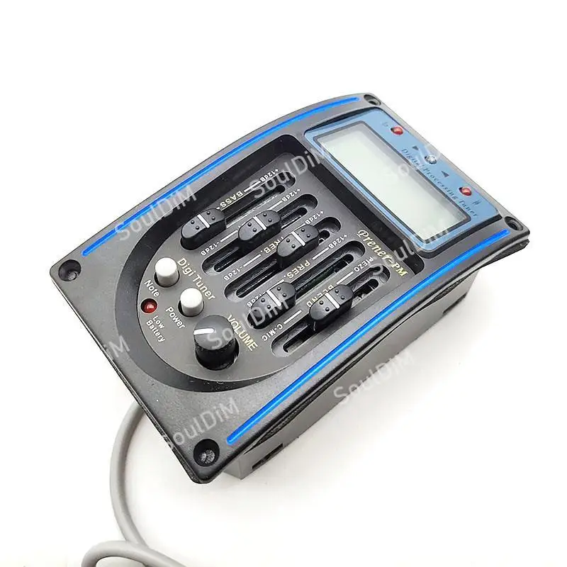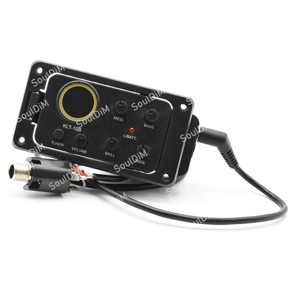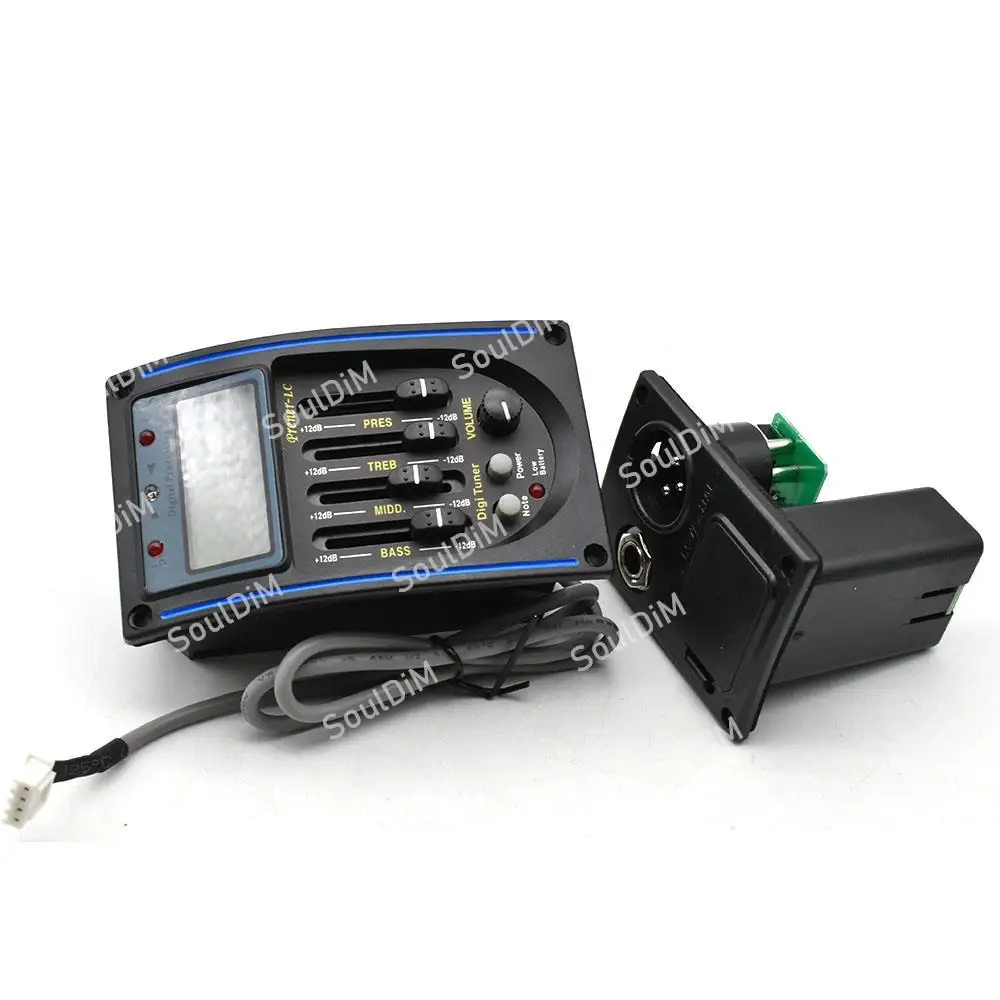 Описание:Название продукта: KLT10B 4 полосным звукосниматель для акустической гитары100% новый и высокое качество.Характеристики: 4 диапазона эквалайзера для акустической гитары, больше подходят для путешествийС ЖК-синим индикатором гитарный тюнерMIDD,BASS,BRILL,TREBС одной ручкой регулировки громкости.С хроматическим тюнером с подсветкой, круглым экраномИсточник питания: аккумулятор 9 В (не включая)Выход Джек: 6,35 мм