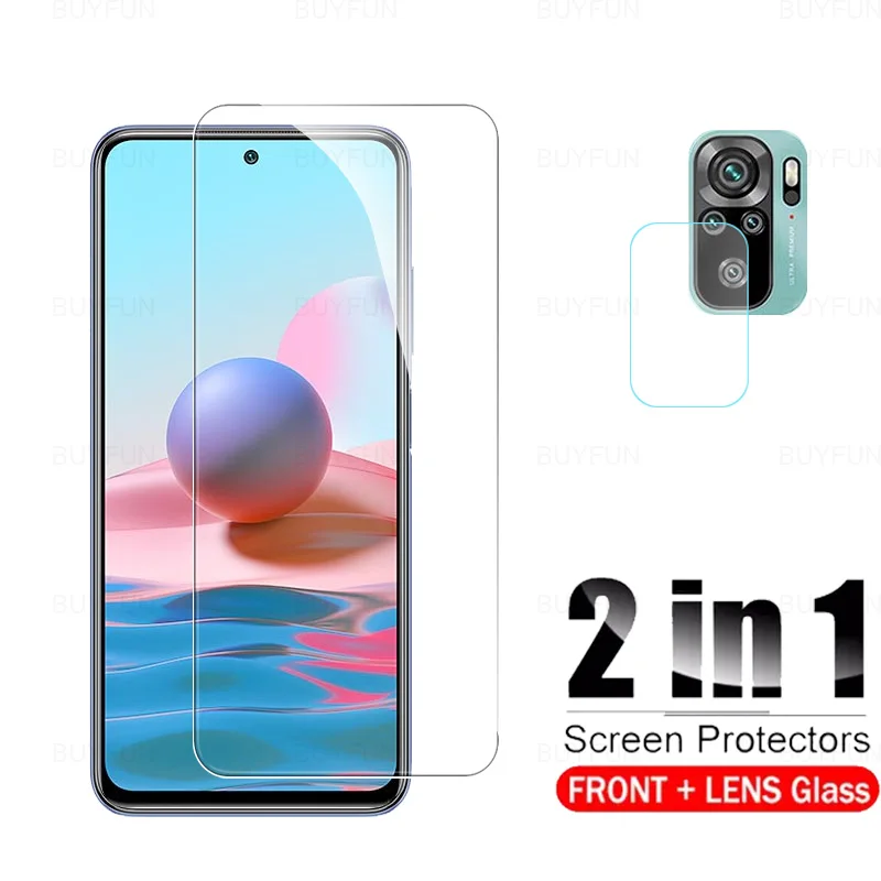 2 в 1 Защитное стекло для Xiaomi Redmi Note 10 4G чехол для объектива камеры защитная пленка redmy note 10 4g M2004J7AC закаленное стекло