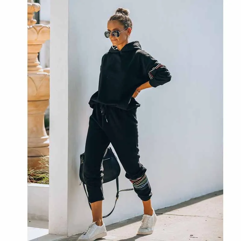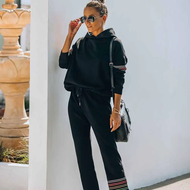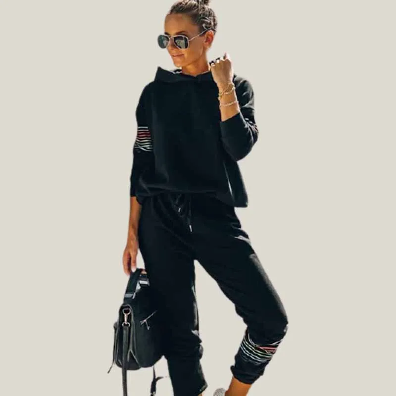 Женский спортивный костюм из 2 предметов, толстовка с капюшоном и брюки, спортивный костюм, осенне-зимний комплект со свитшотом, теплые костюмы для женщин