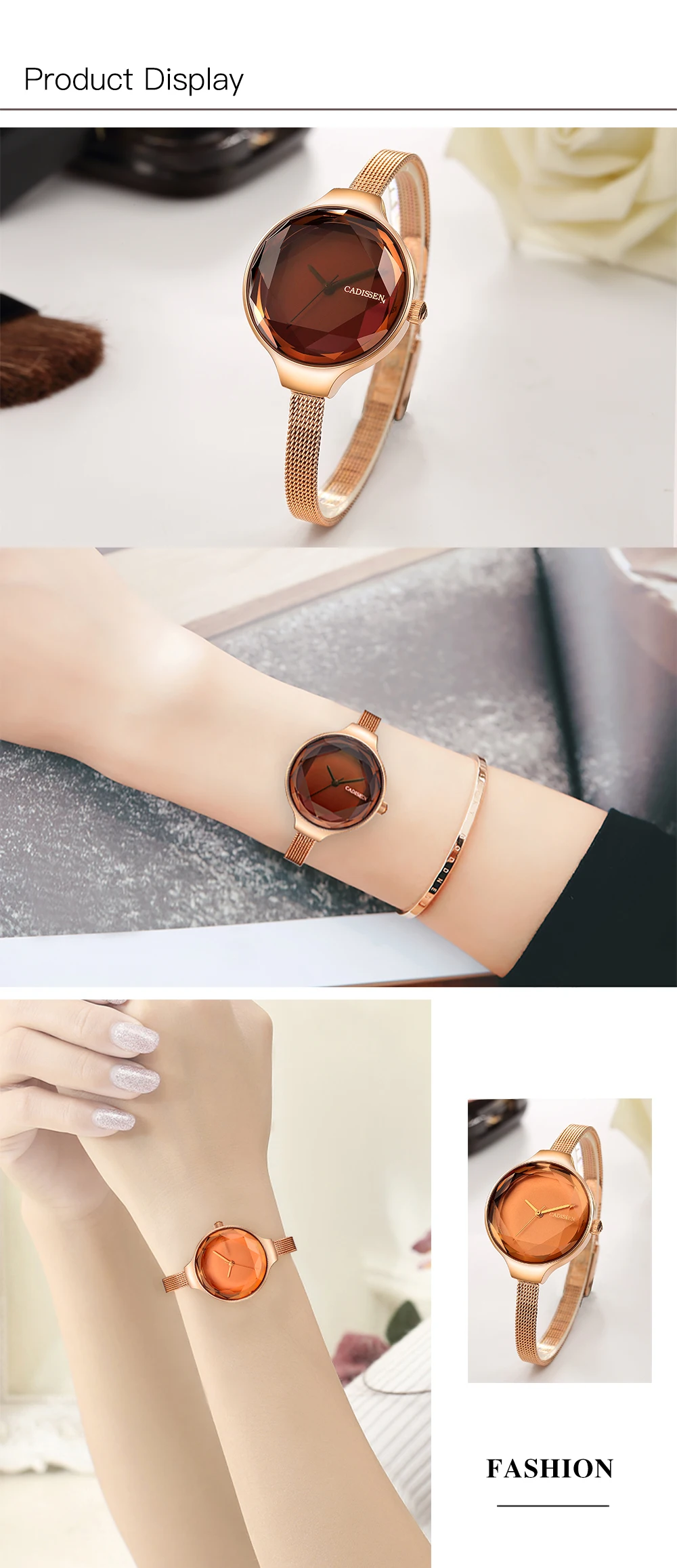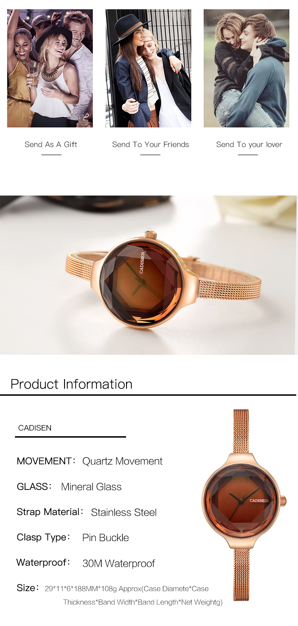 CADISEN японские кварцевые часы высокого качества женские часы из нержавеющей стали с сеткой из розового золота водонепроницаемые женские часы дропшиппинг