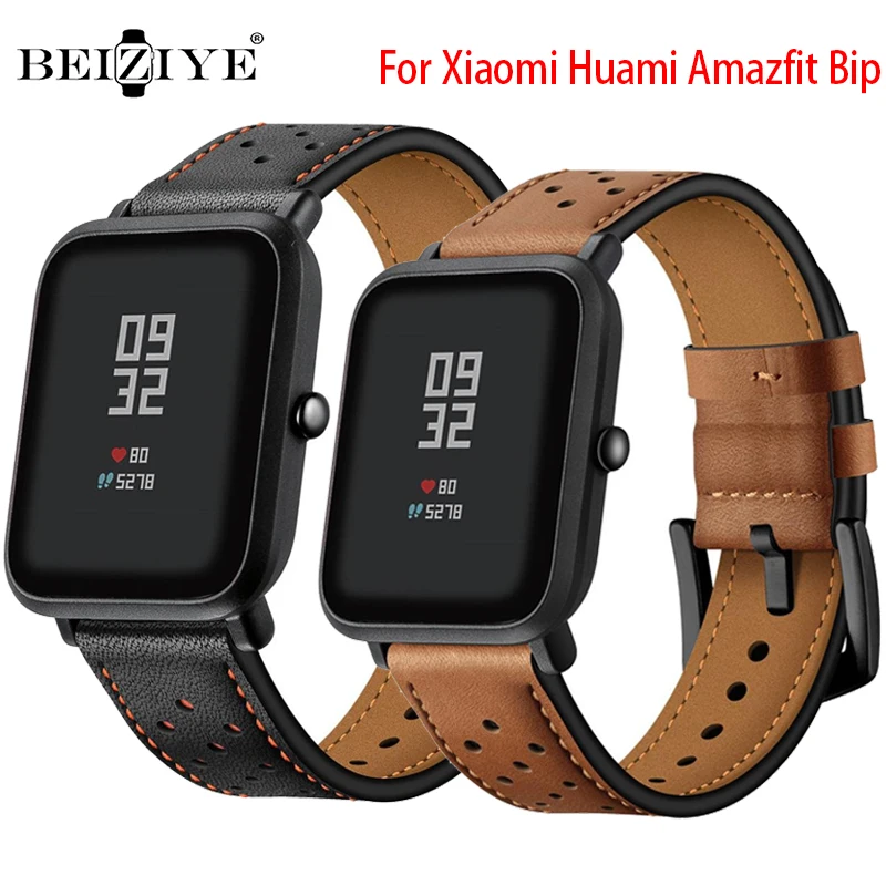 Ремешок кожаный 20 мм для Xiaomi Huami Amazfit Bip, сменный Браслет для наручных часов Xiaomi Huami Amazfit Bip