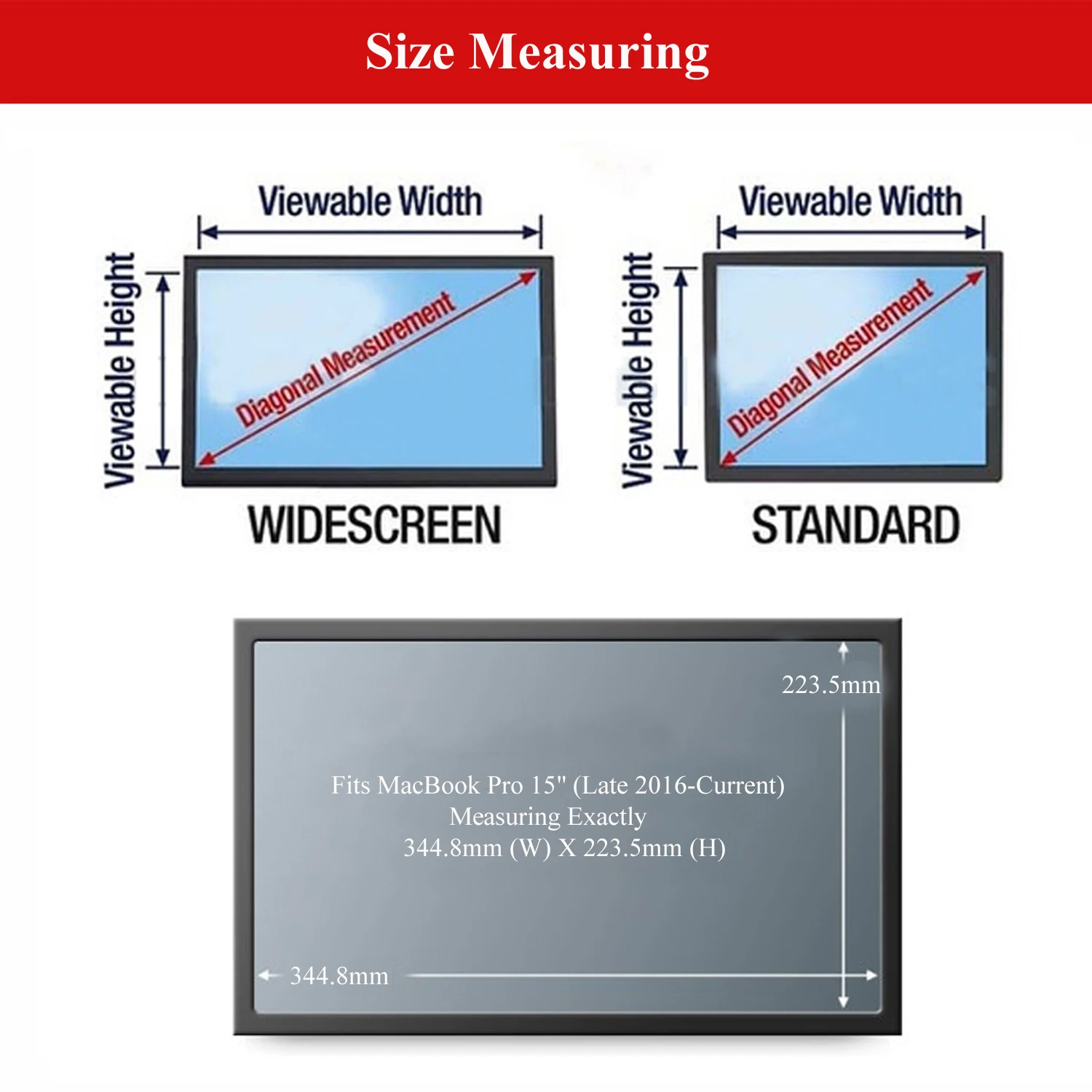 Подходит для размеров экрана 15,4 дюйма по диагонали (ширина 344,8 мм, высота 223,5 мм)