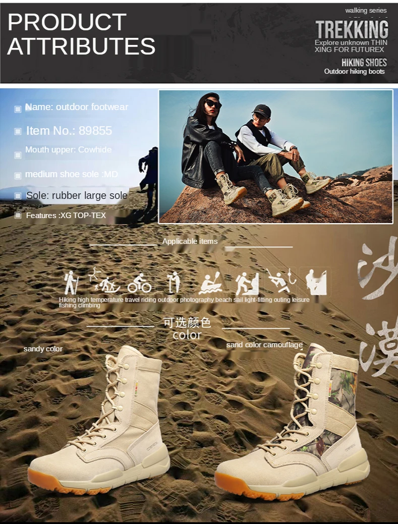 XIANG GUAN походная обувь, мужские водонепроницаемые ботинки, охотничья обувь, тактическая обувь, пустынные женские ботильоны, кожаные прогулочные ботинки для снега