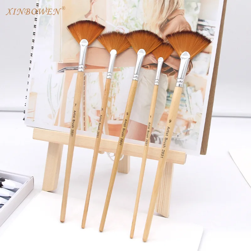 Набор кистей для рисования акварелью и гуашью, 5 штук, в форме веера, нейлоновый принадлежности художественные Кисти