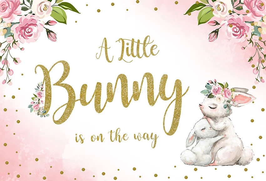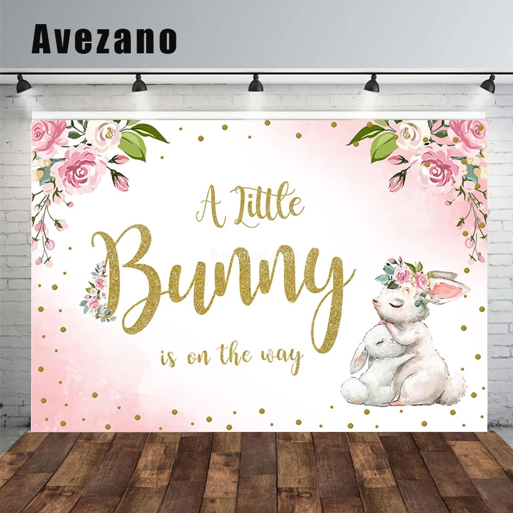 Avezano Baby Shower вечерние декоративный фон маленького милого зайчика цветы розовый фон для фотосъемки фотостудия фотозонт фотосессия Виниловый фон