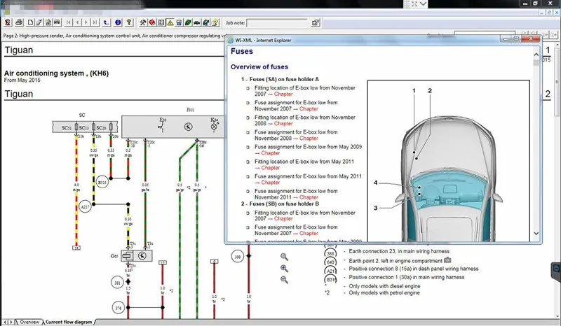 Программа ELSA содержит подробное описание технологии ремонта, электрических схем, кузовов, каталога запасных частей для гарантийной замены. На «старых» моделях информации этого недостаточно.