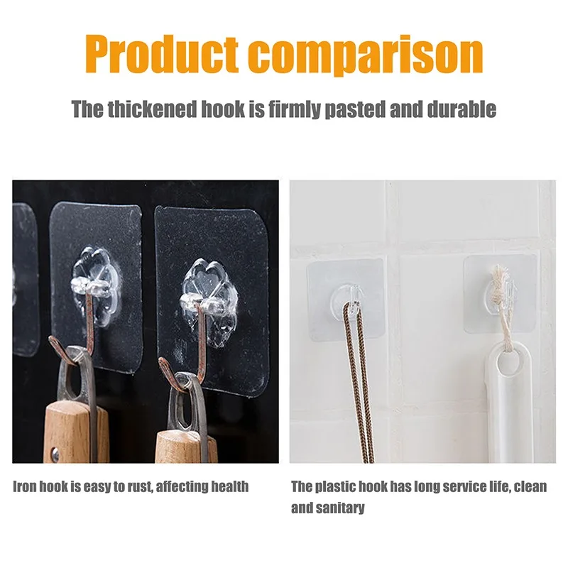 С двумя крючками, которые сочетаются друг с другом для легкой и удобной подвешивания, не беспокойтесь о том, что нет отверстия для подвешивания, И это до 15 кг на один набор крючков на стене и потолке. Без сверления, без винтов, без отверстий, без клея. Водонепроницаемость и маслостойкость, высокая и низкая температура. Сопротивление.