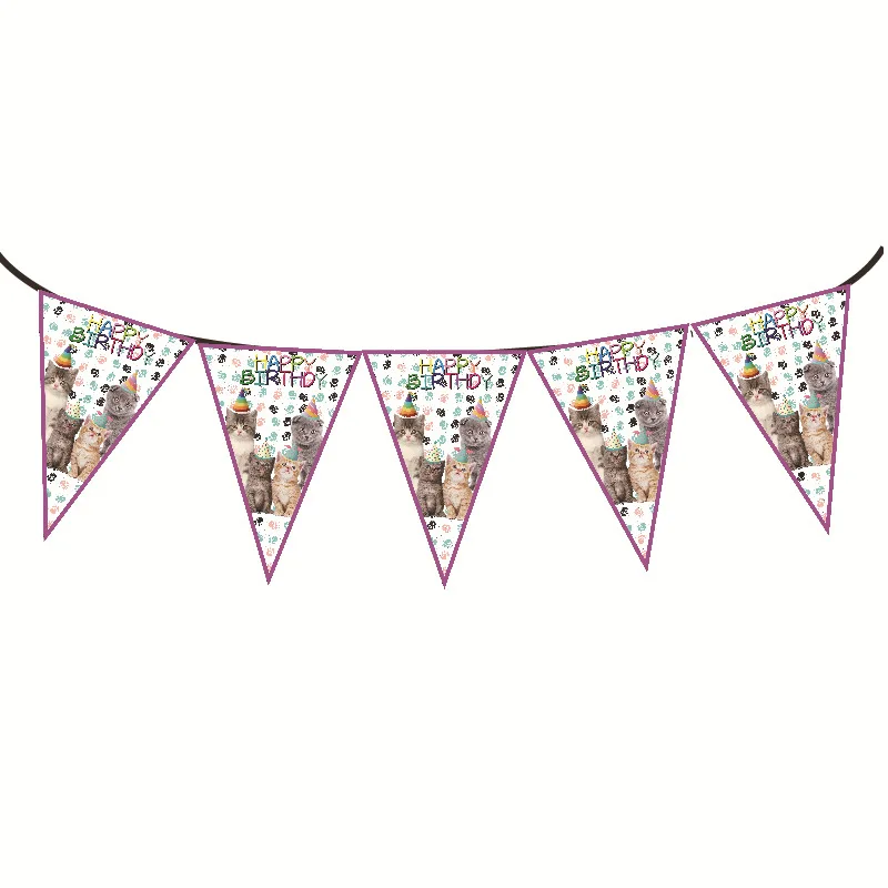 Новинка, одноразовая посуда для дня рождения с милым котом, флагами, тематические украшения для домашних животных